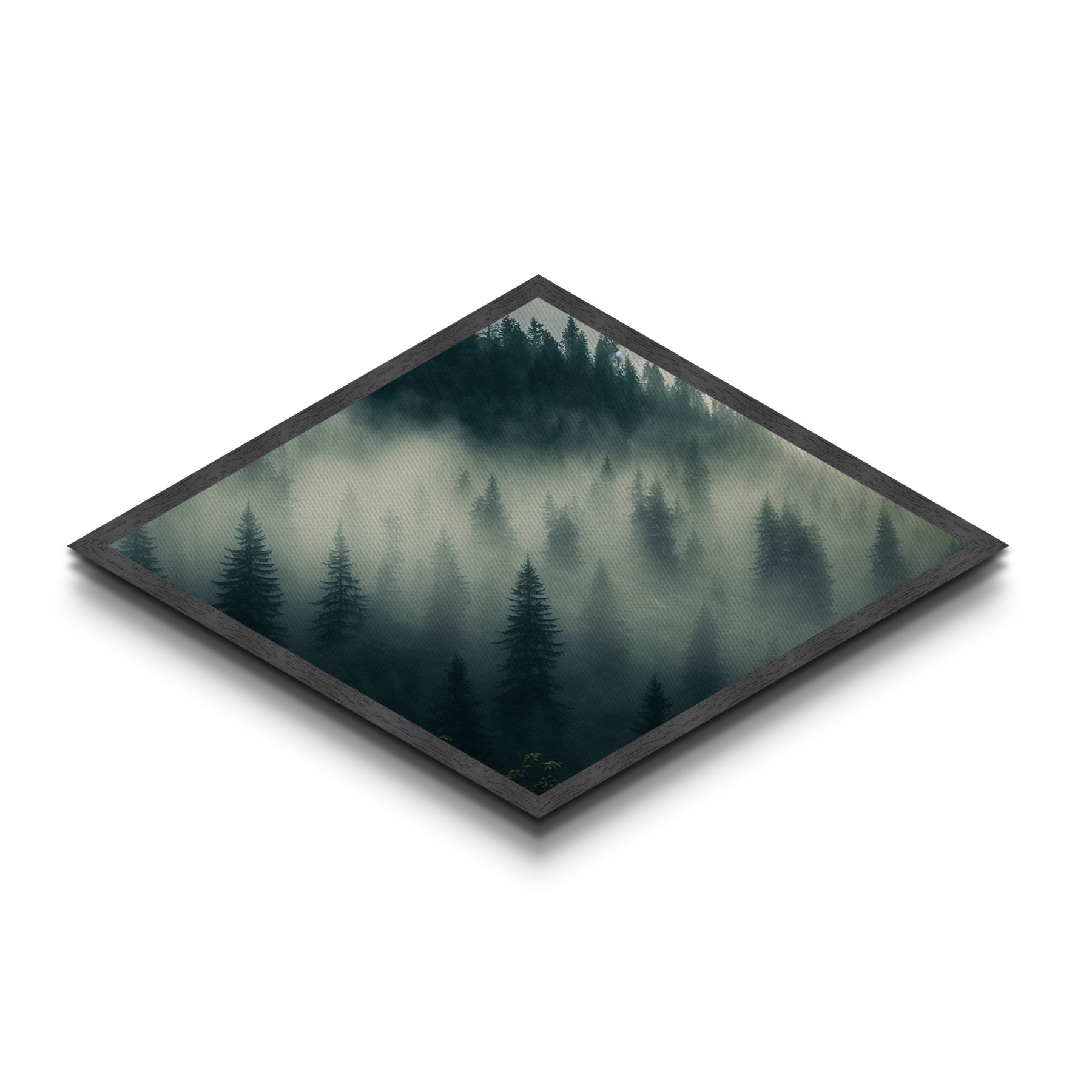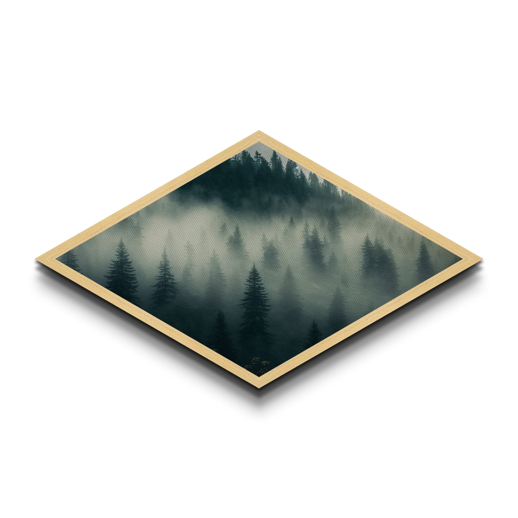 Fog Drenched Pines Diamond Shaped Forest Landscape Canvas Art Print Serene Tree Silhouettes Moody Mountain Fog Wilderness Wall Art