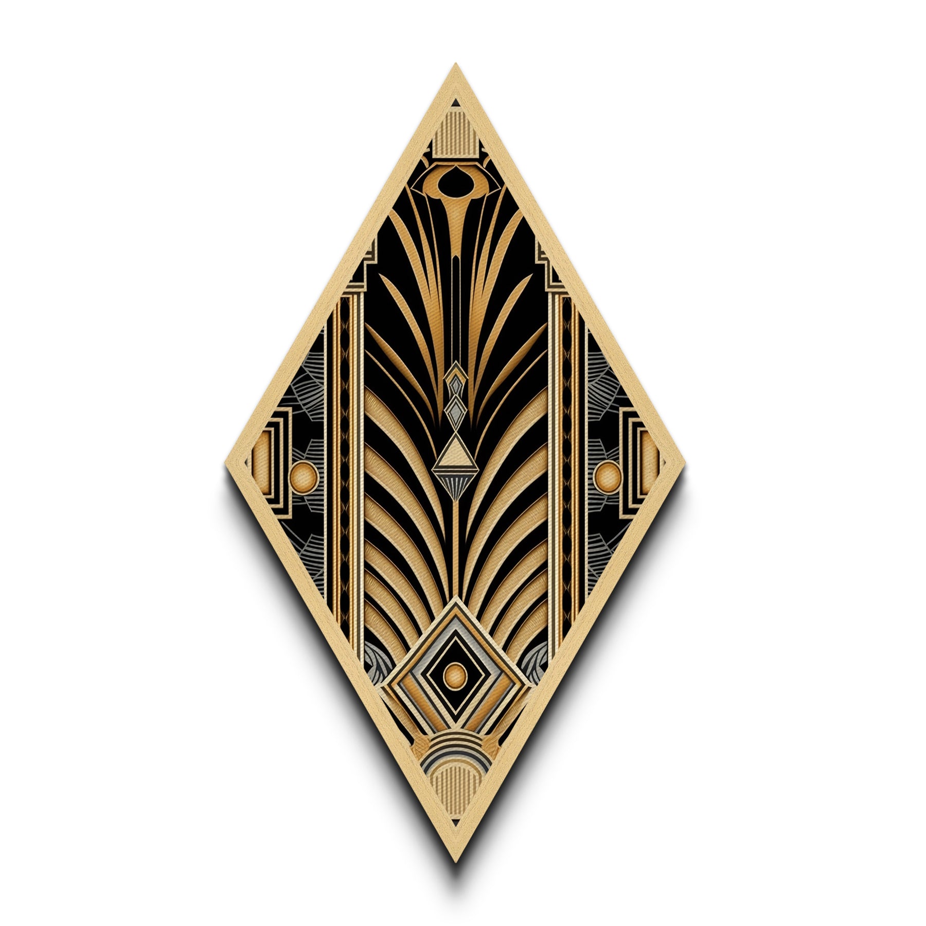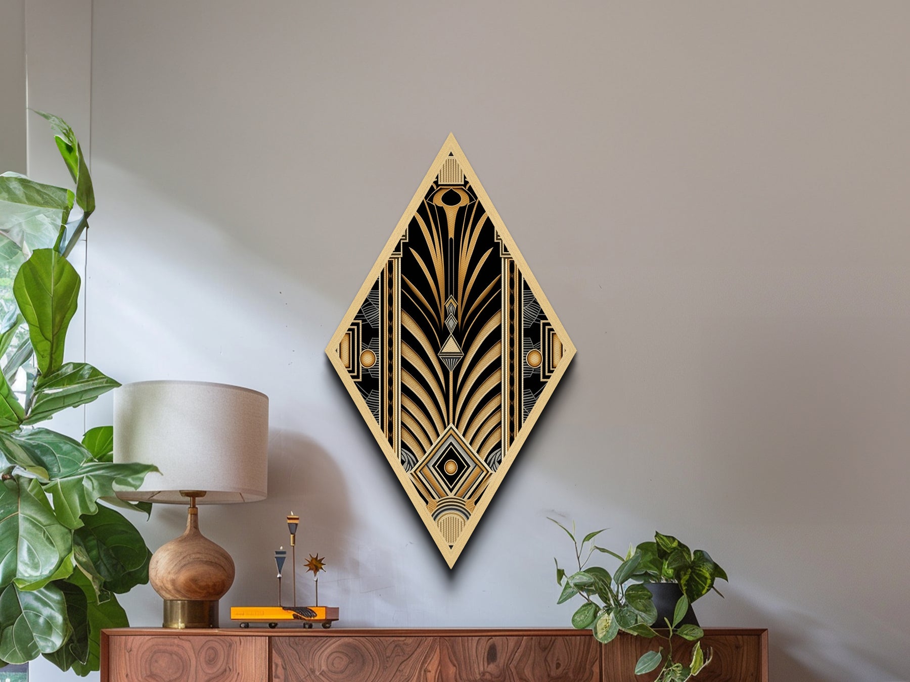 Gold and Black Diamond Shaped Art Deco Wall Art Panel Print, Diamond Shaped Art, Office Decor, MCM Art