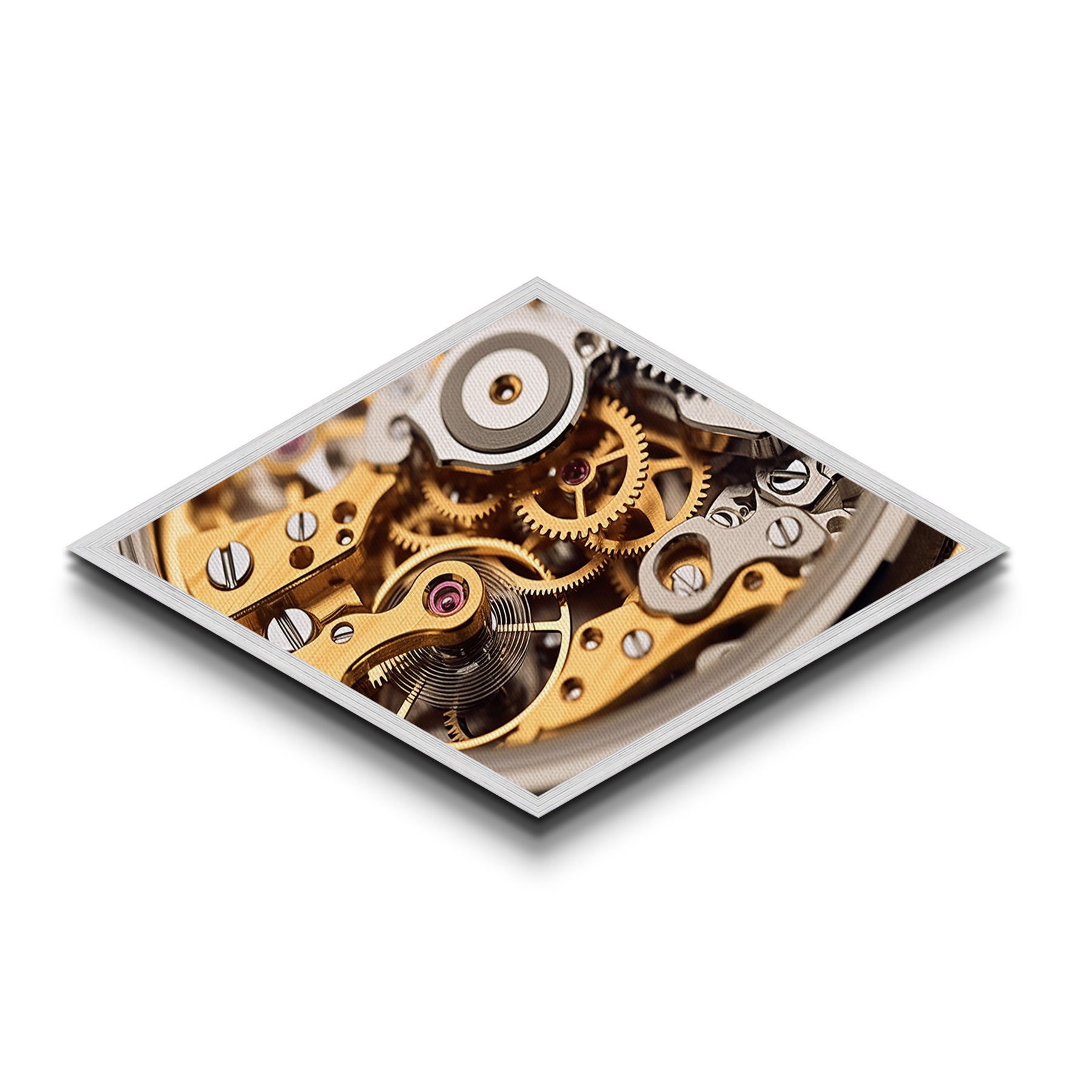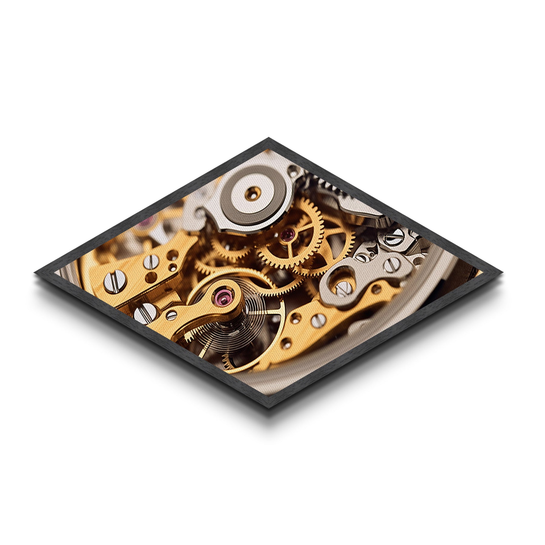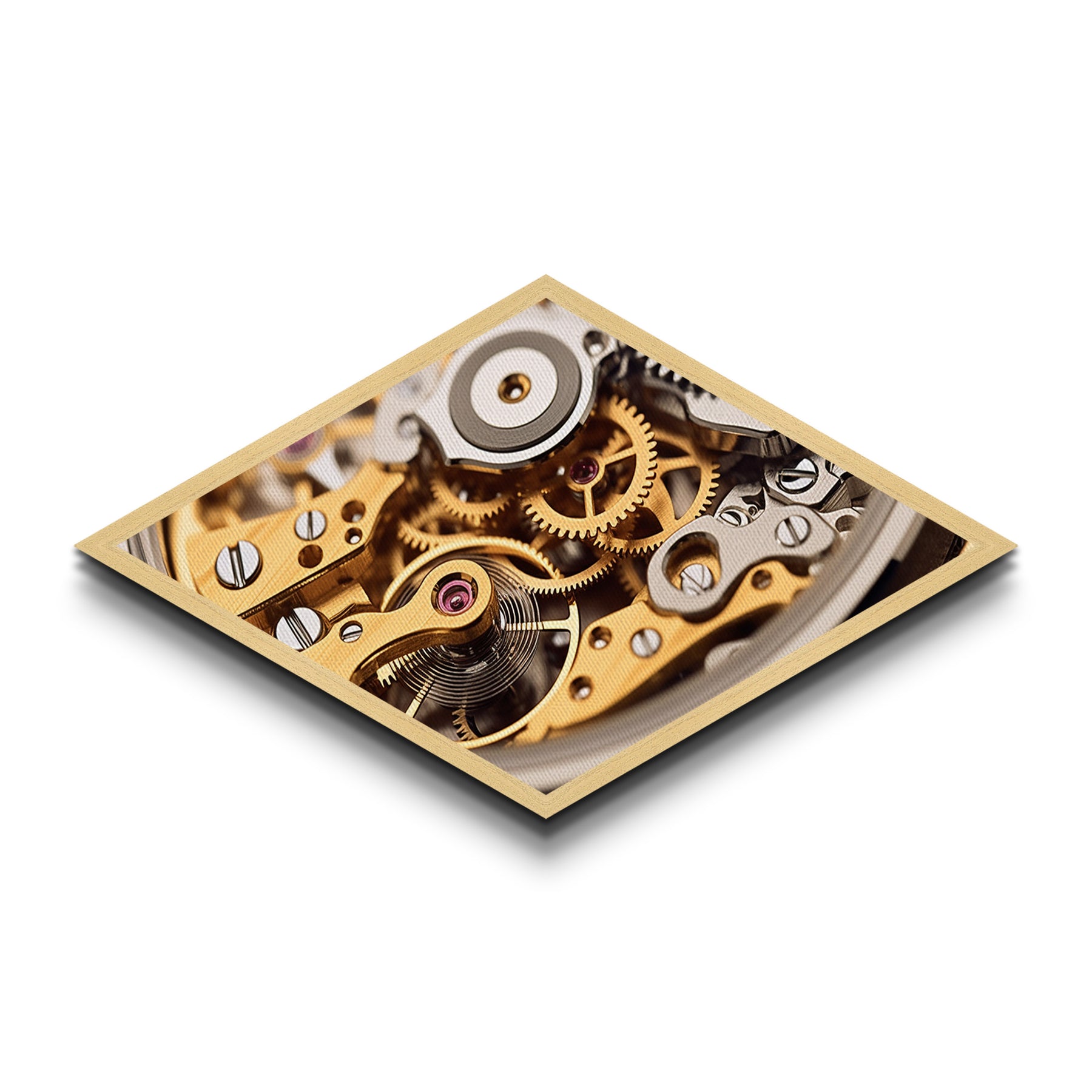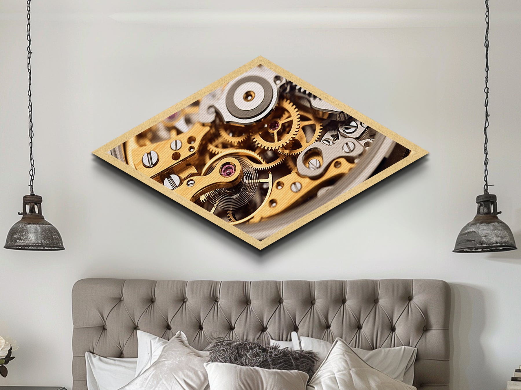 Horology Precision Gears Diamond Shaped Canvas Embossed Print, Steampunk Clockwork Art, Industrial Style Decor, Watchmaker Gift