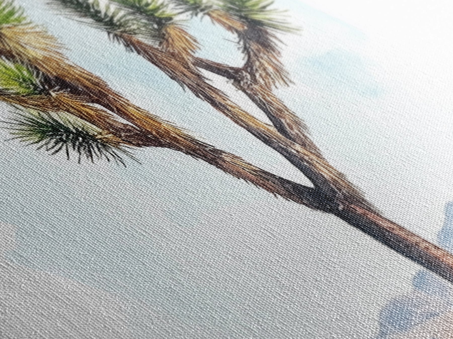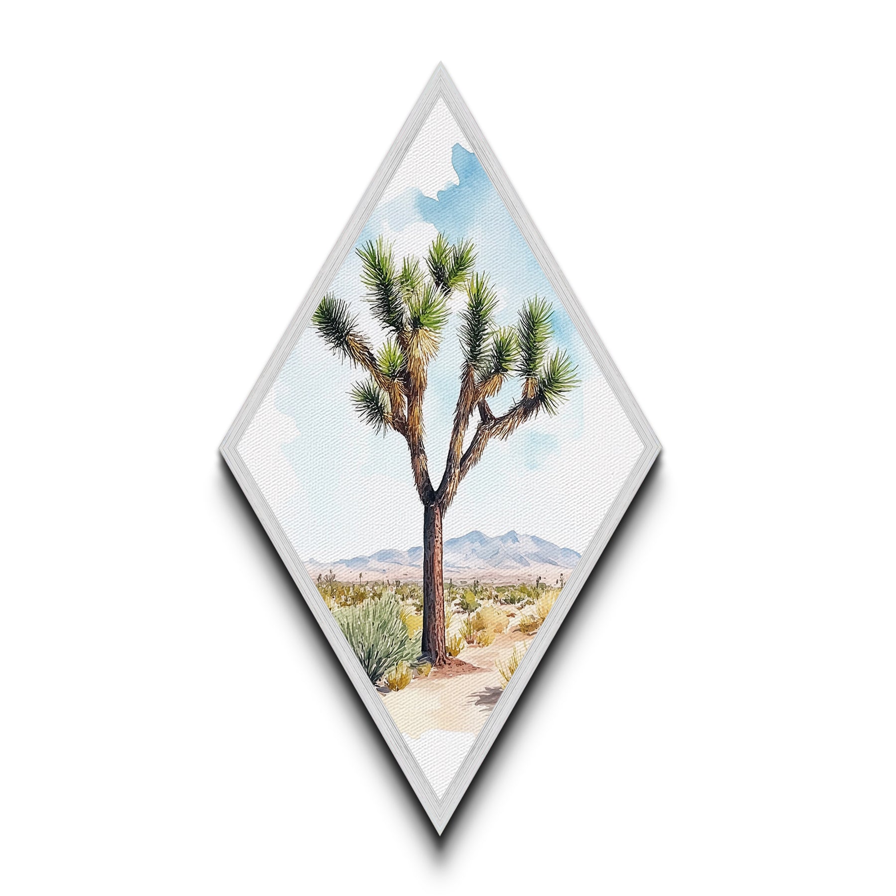 Joshua Tree Vista Diamond Shaped Canvas Textured Print, Desert Botanical Watercolor Art, Nature Landscape Wall Accent