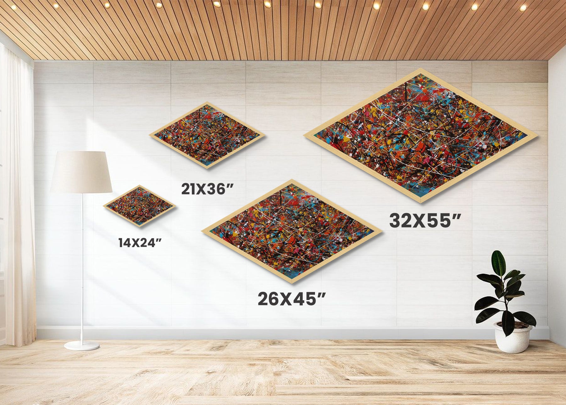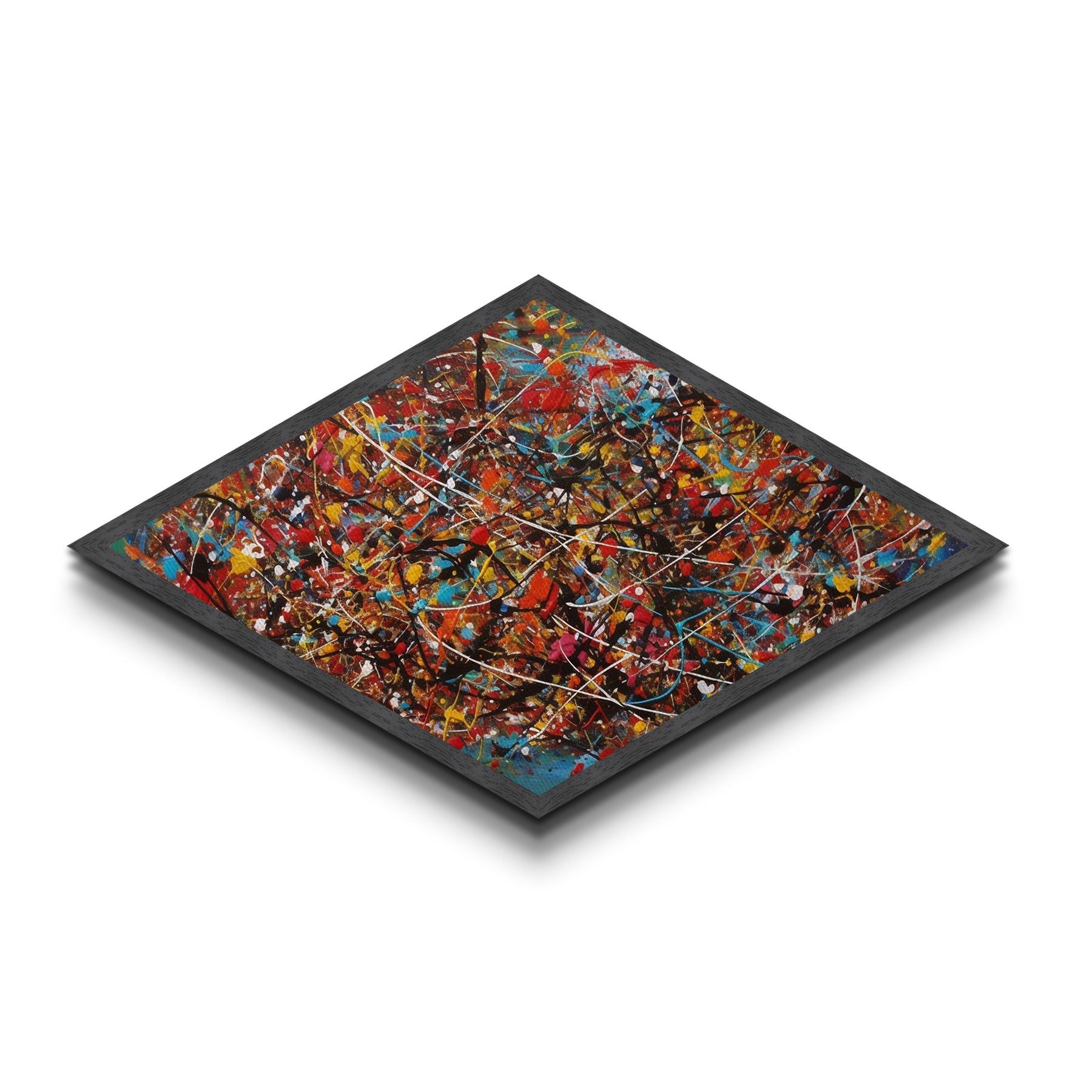 Kinetic Color Storm Diamond Shaped Abstract Art Canvas Embossed Print Splatter Painting Bright Bold Expressionist Energy Home Style
