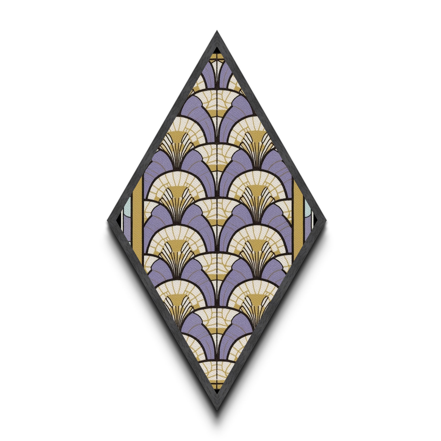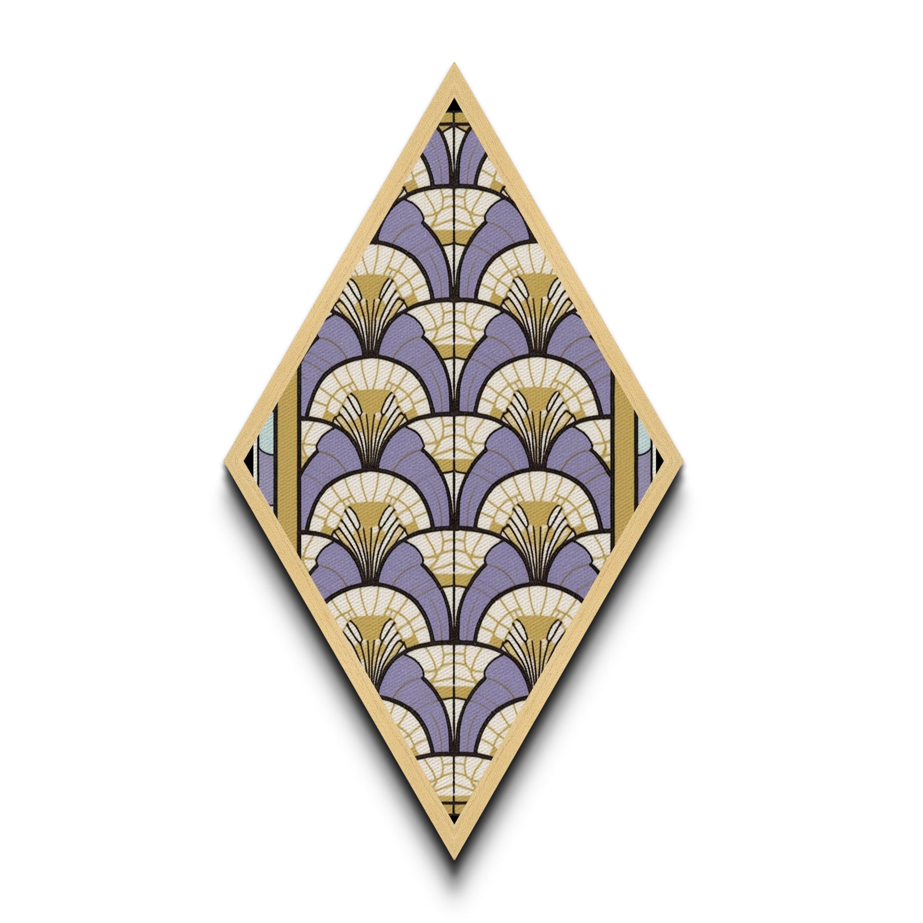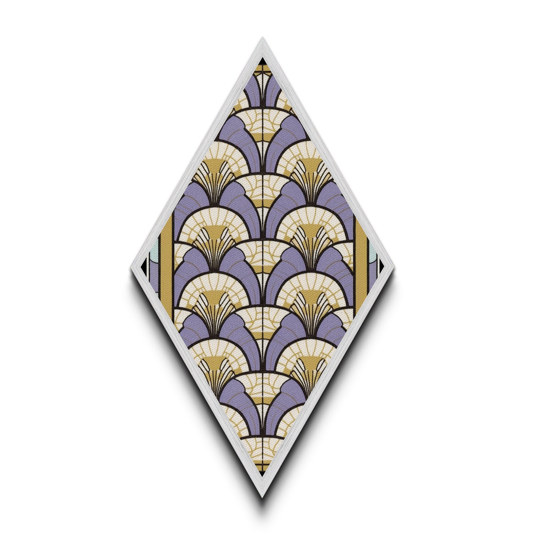 Lavender Deco Layers Diamond Shaped Canvas Textured Print, Art Nouveau Fan Motif, Pastel Pattern Geometric Wall Accent