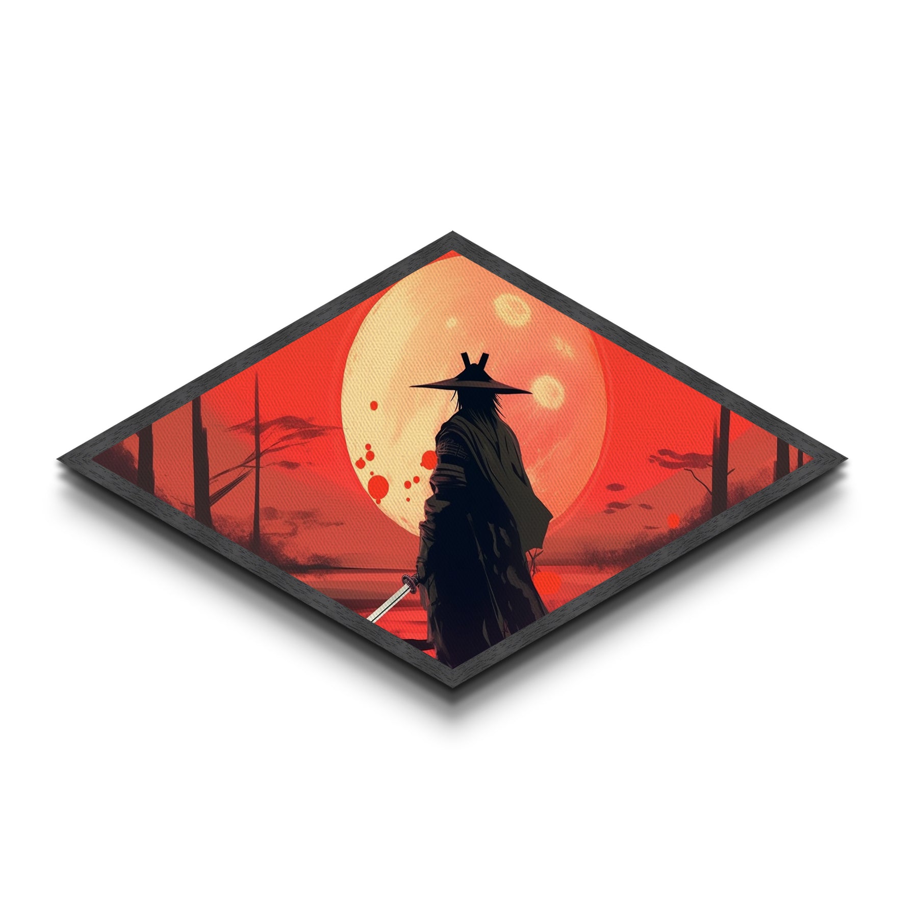 Lone Ronin Eclipse Diamond Shaped Canvas Textured Print, Samurai Sunset Wall Art, Anime Warrior Decor, Japanese Aesthetic Gift