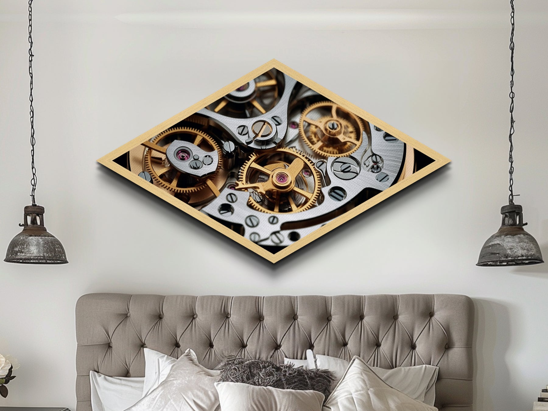Mechanical Timecraft Detail Diamond Shaped Canvas Textured Print, Watch Movement Art, Industrial Engineering Gift, Steampunk Decor