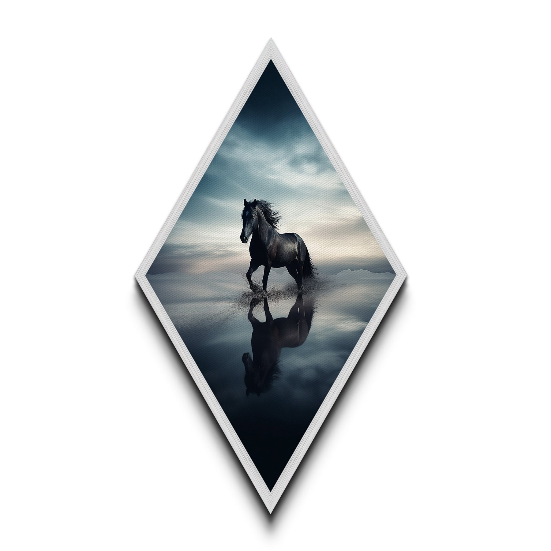 Midnight Stallion Run Diamond Shaped Canvas Textured Print, Majestic Black Horse Fine Art, Equine Spirit Desert Reflection
