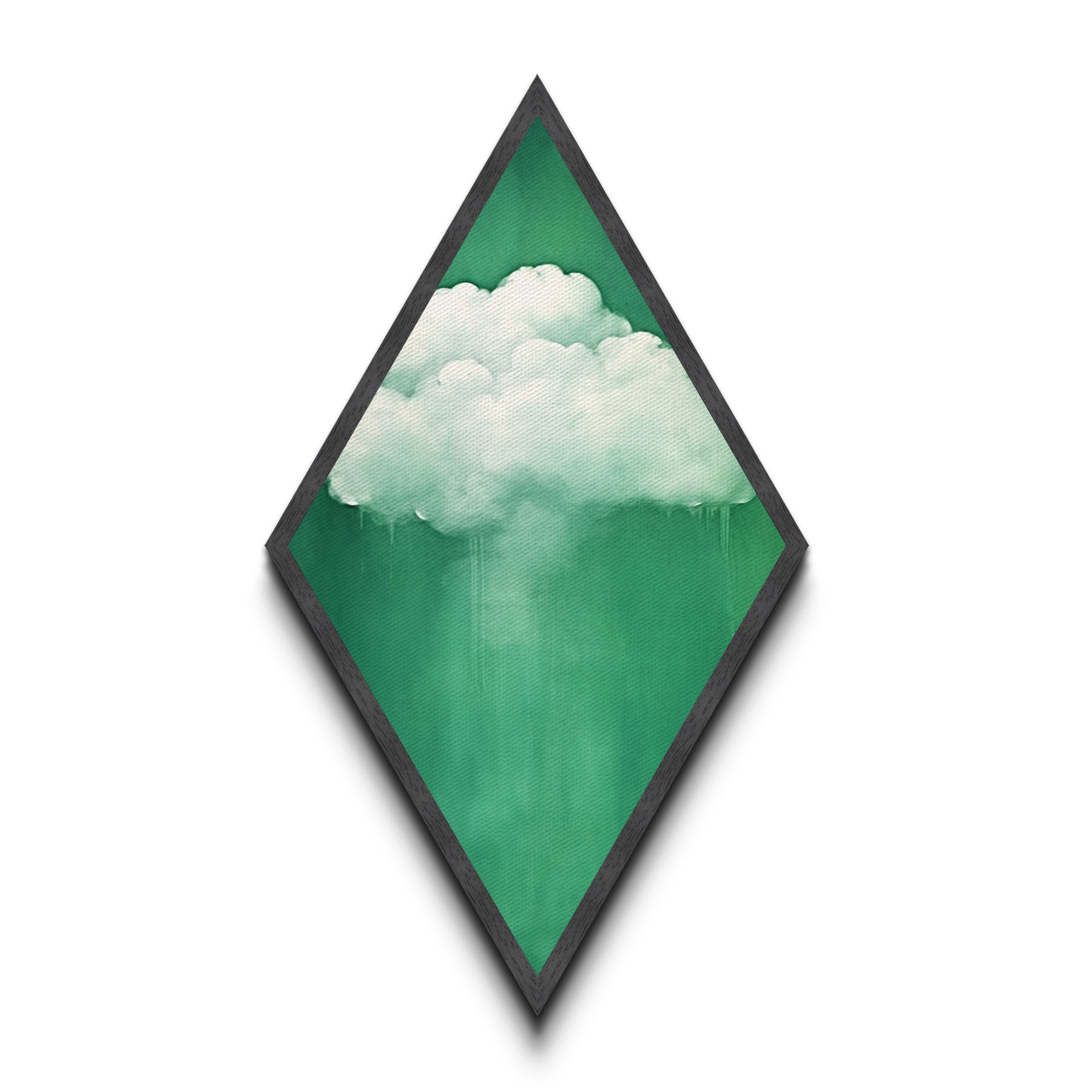 Misty Cloud Burst Diamond Shaped Soft Green Modern Canvas Textured Print Dreamscape Wall Art Serene Minimal Cloudy Sky Piece
