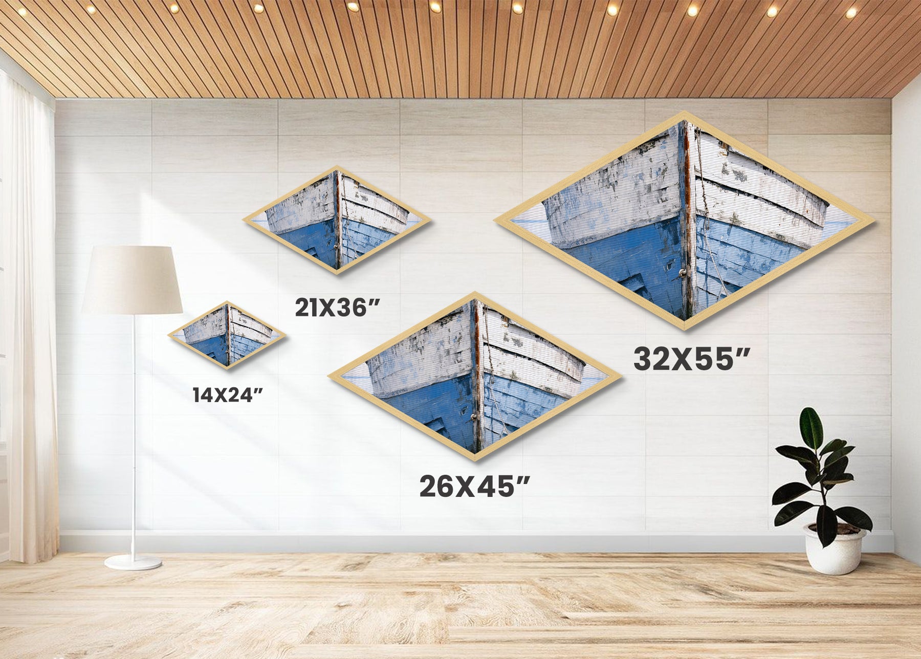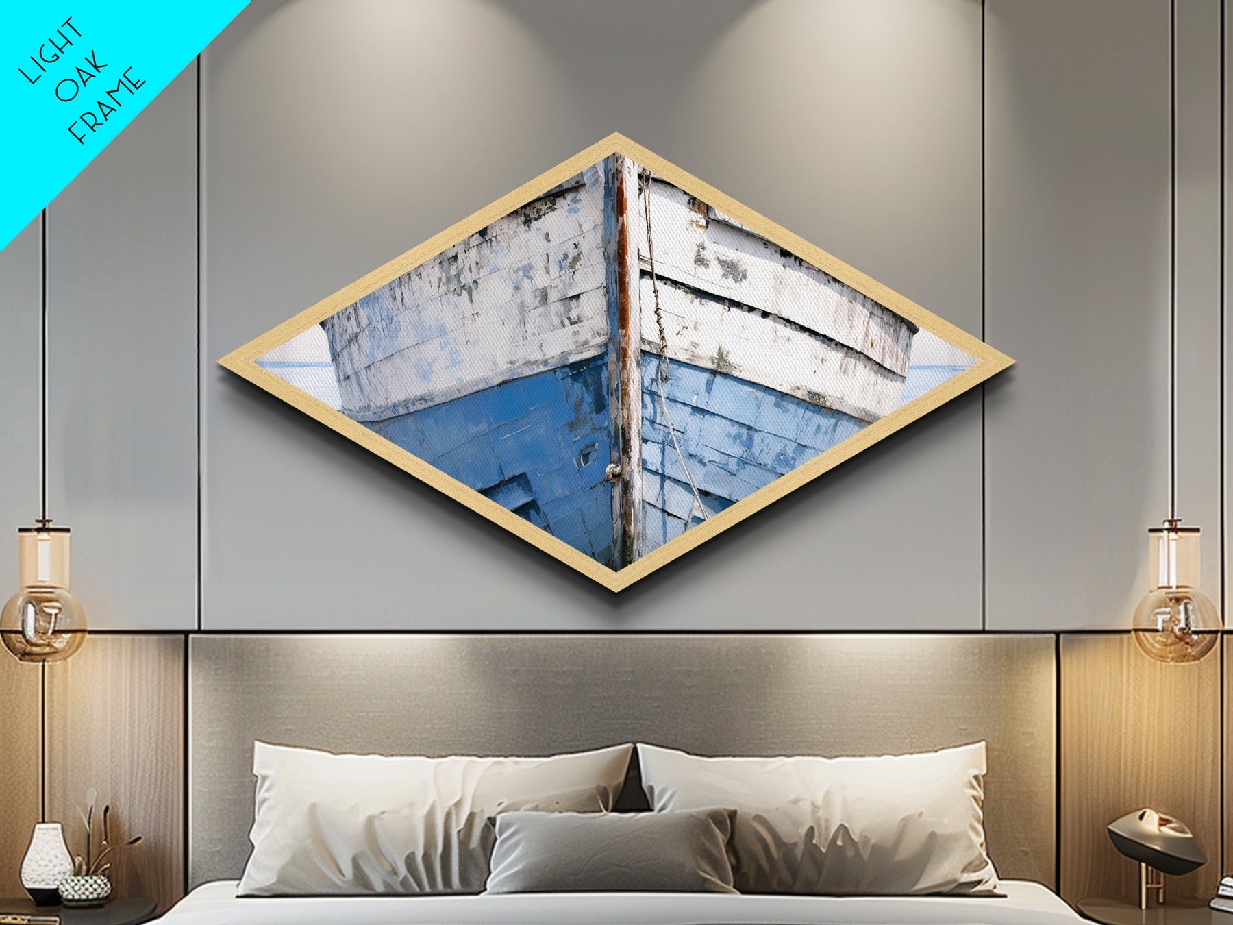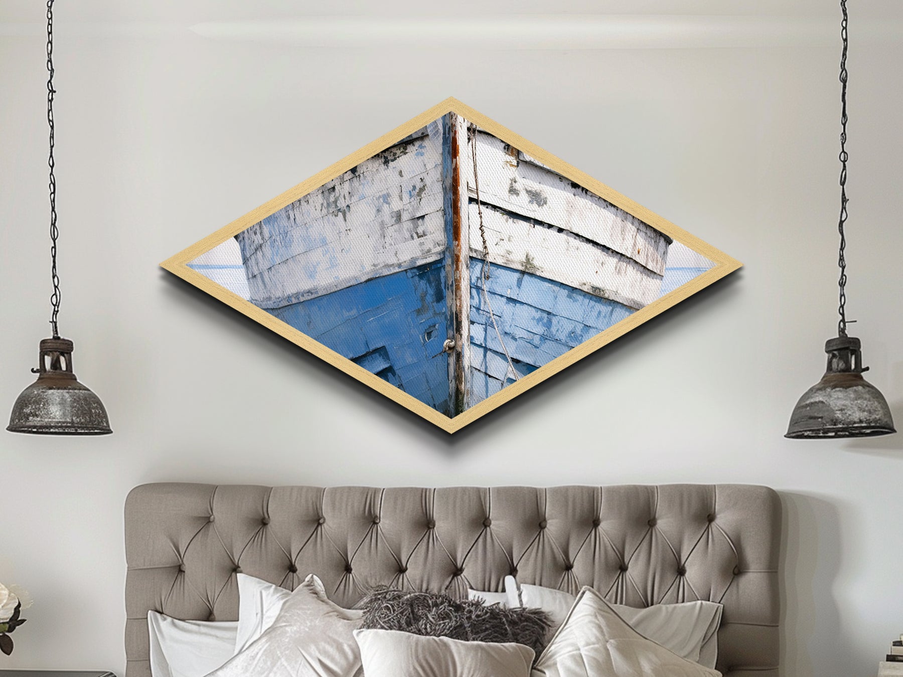 Nautical Hull Charm Diamond Shaped Canvas Textured Print rustic boat bow ocean vessel coastal vintage marine blue white nautical art