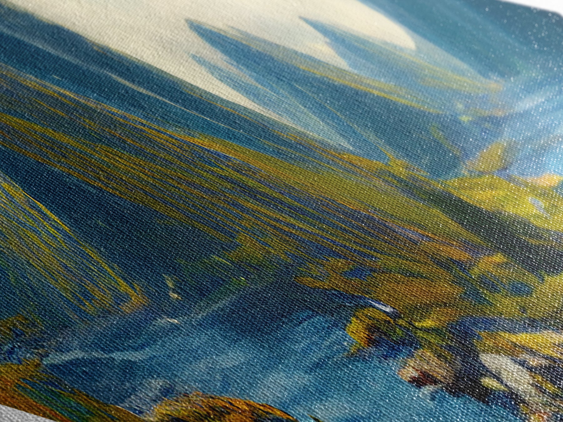 Most of our canvases are made in the USA, with the exception of canvases ordered with the light oak unstained frames, and any large canvases (24x48, 30x60, 16x48 and 20x60) ordered WITH a frame. These are temporarily made in and shipped from Europe, while we try to find a more consistent supplier in the USA.