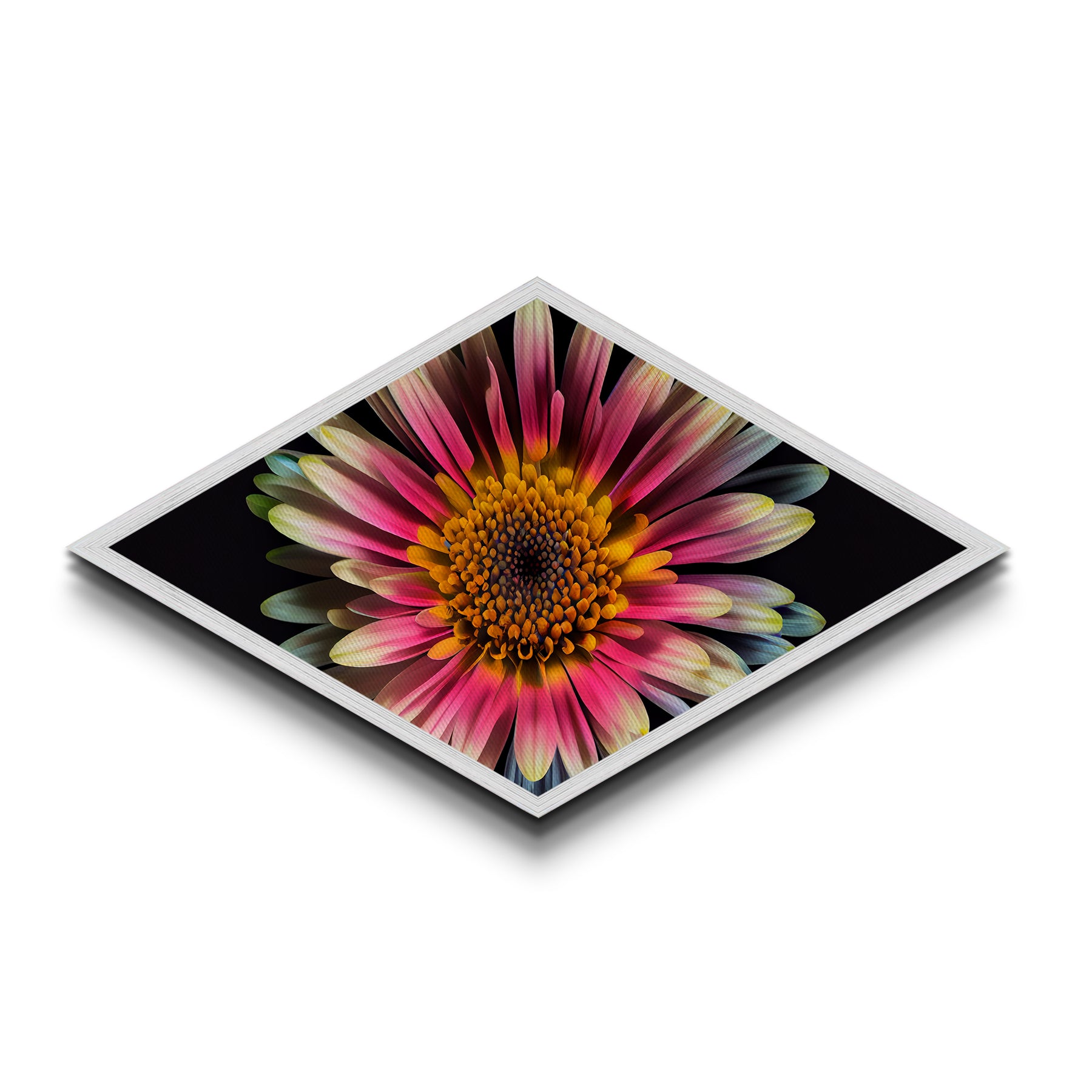 Pink Radiance Bloom Diamond Shaped Canvas Embossed Print, Colorful Flower Wall Art, Botanical Gift, Bright Floral Home Accent