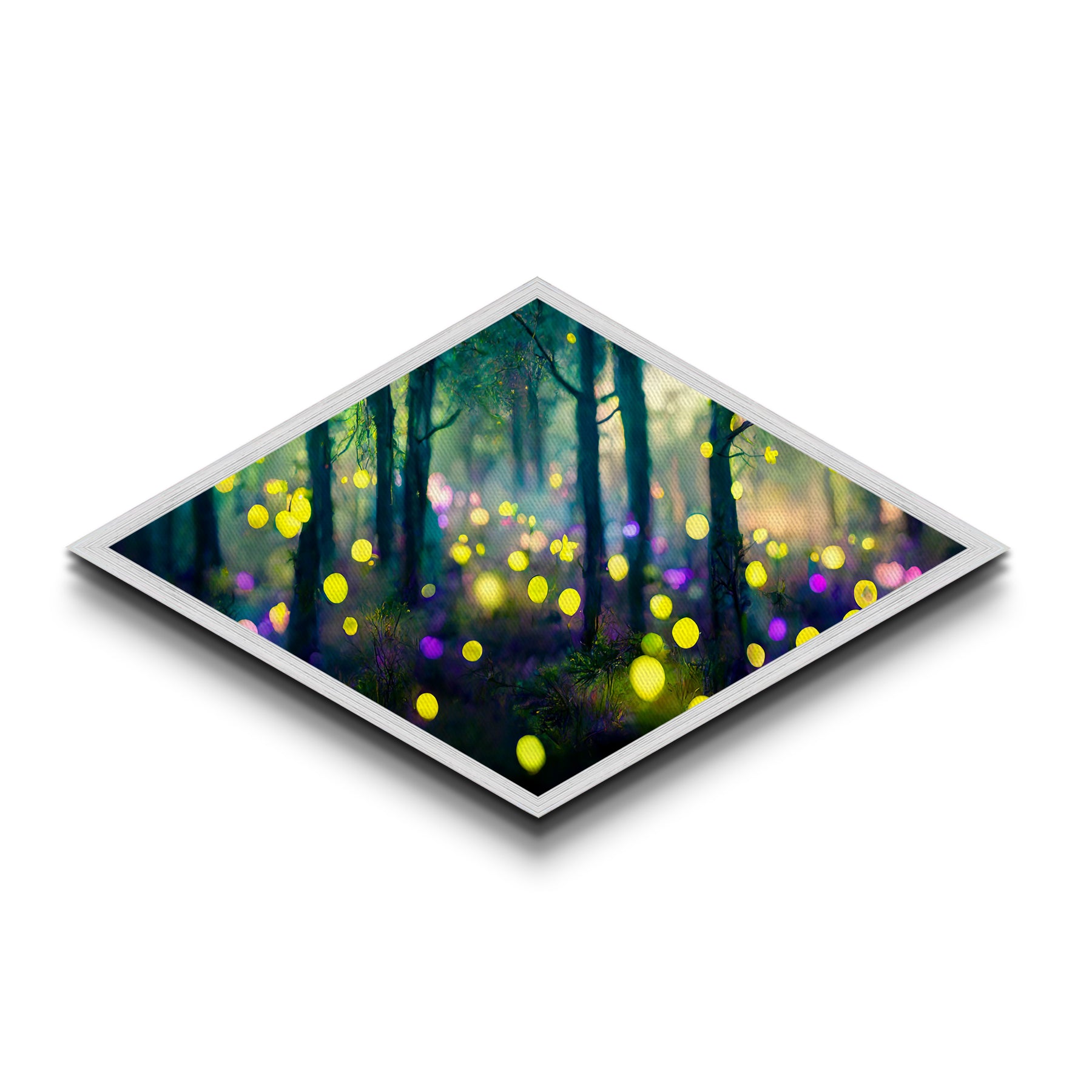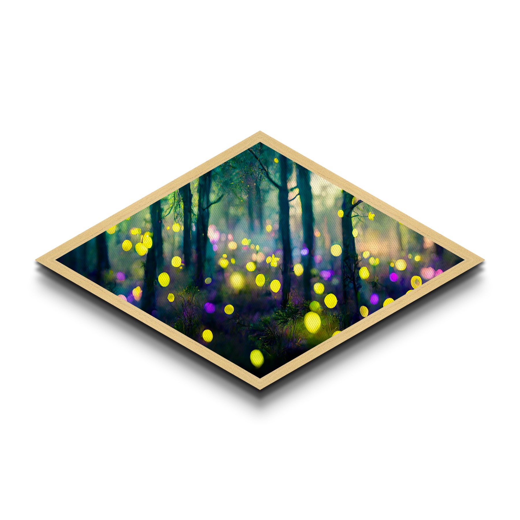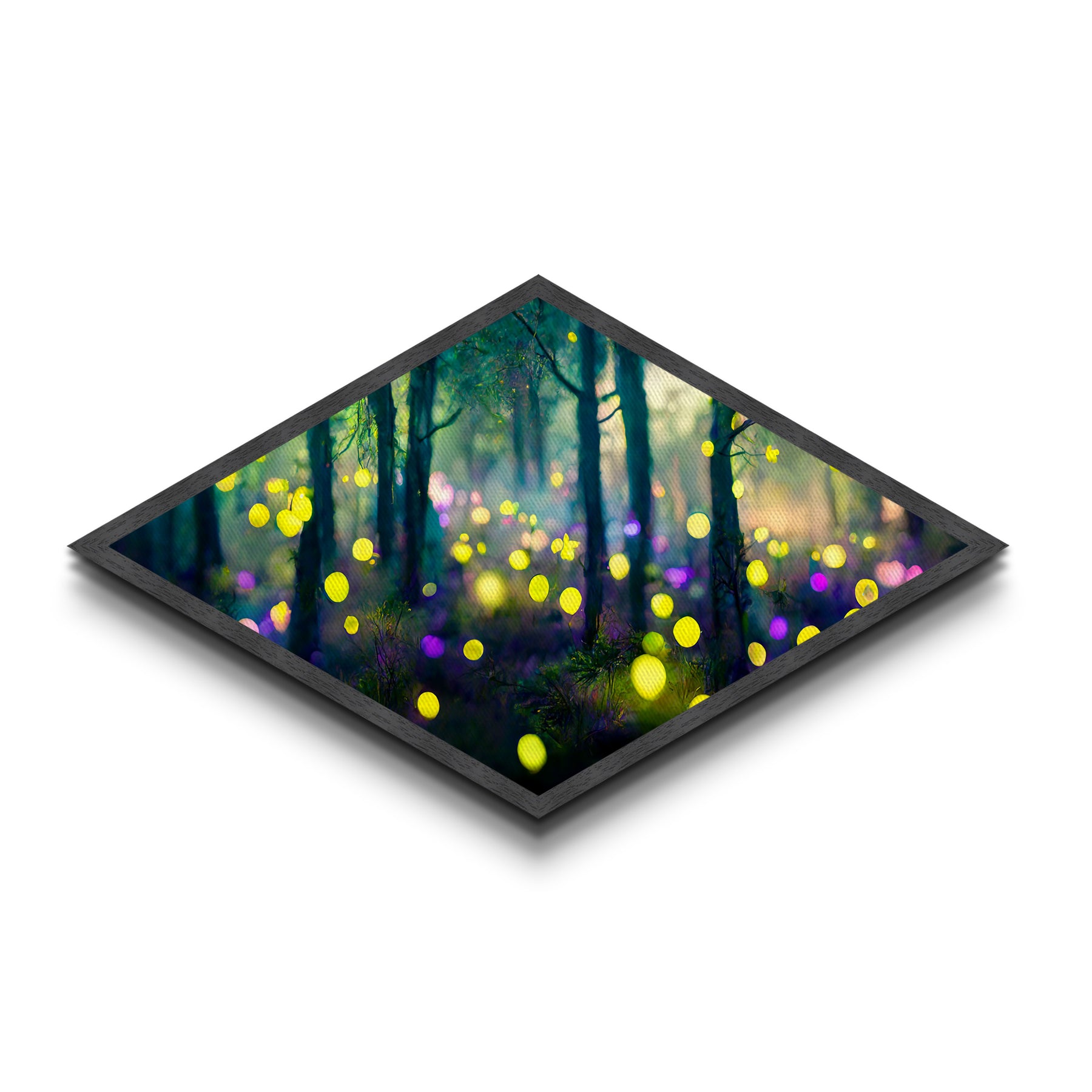 Rainfall Over Mountains Diamond Shaped Canvas Embossed Print, intense weather scene wall art, dramatic sky and landscape painting