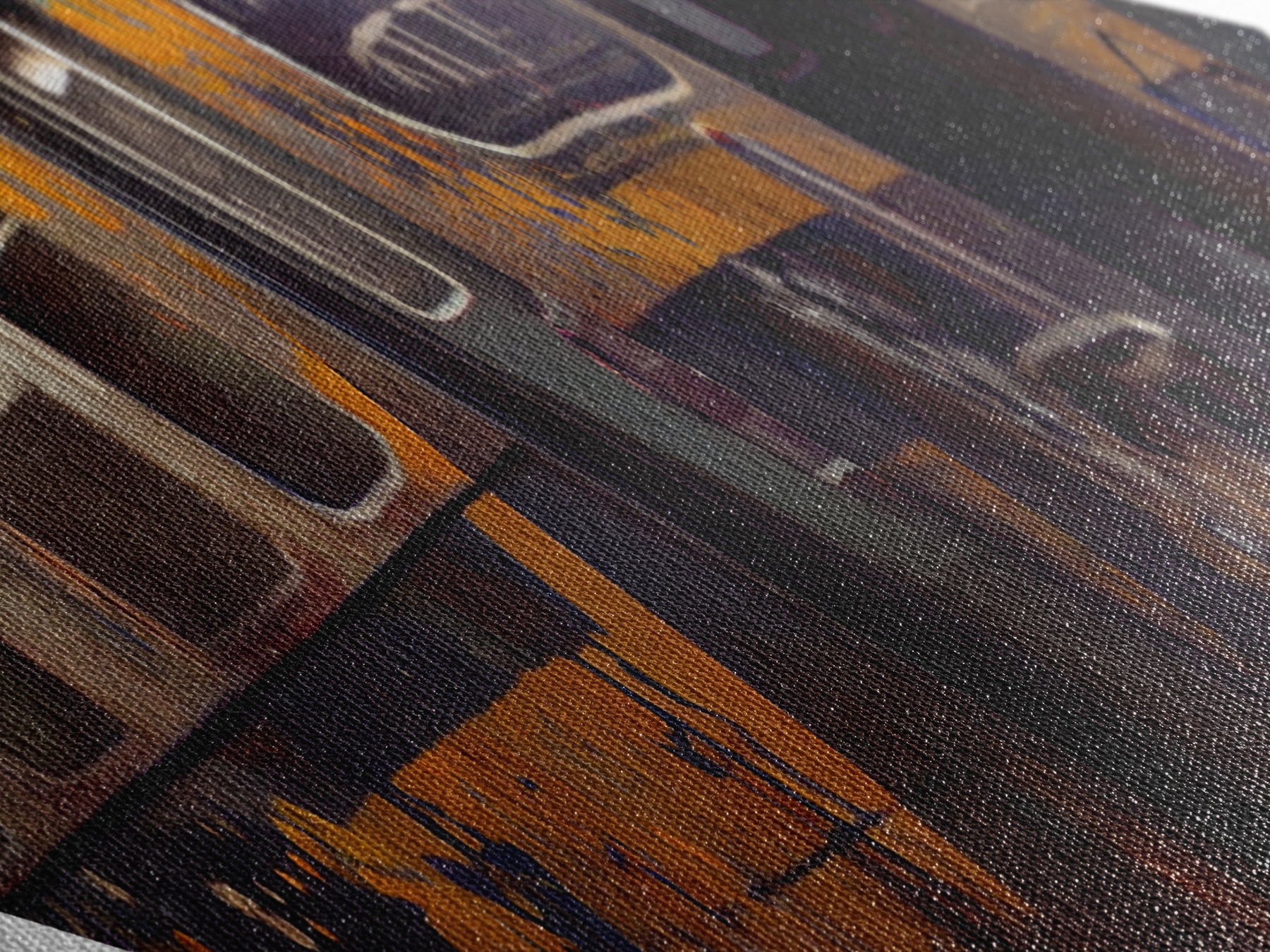 Rusted Transit Car – Diamond Shaped Urban Grunge Train Canvas Art Print, Industrial Railway Wall Decor in Retro Palette