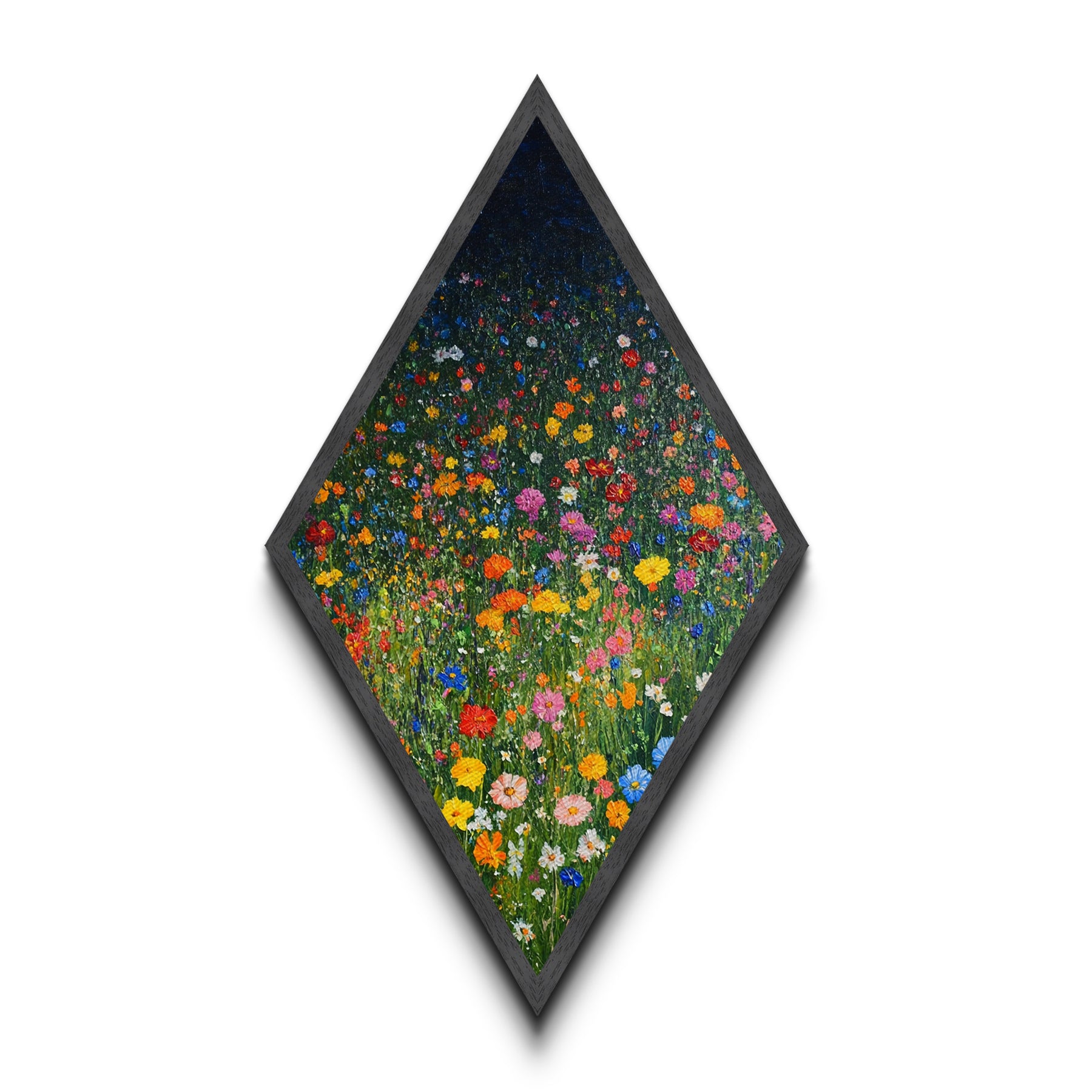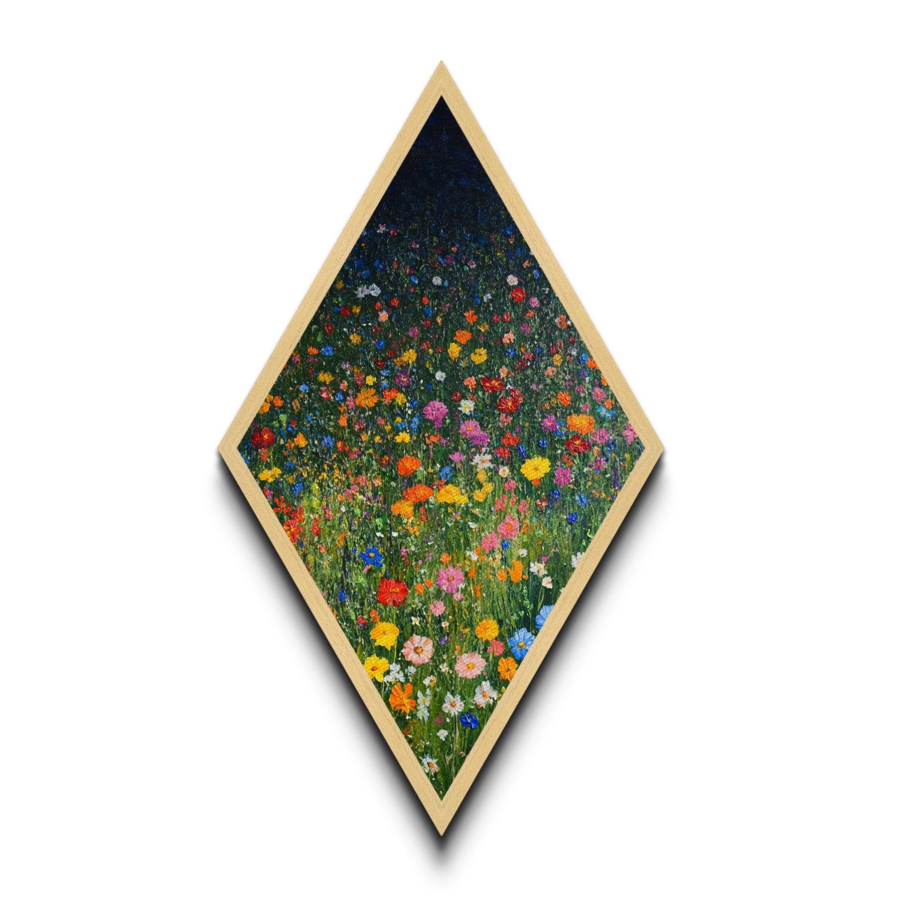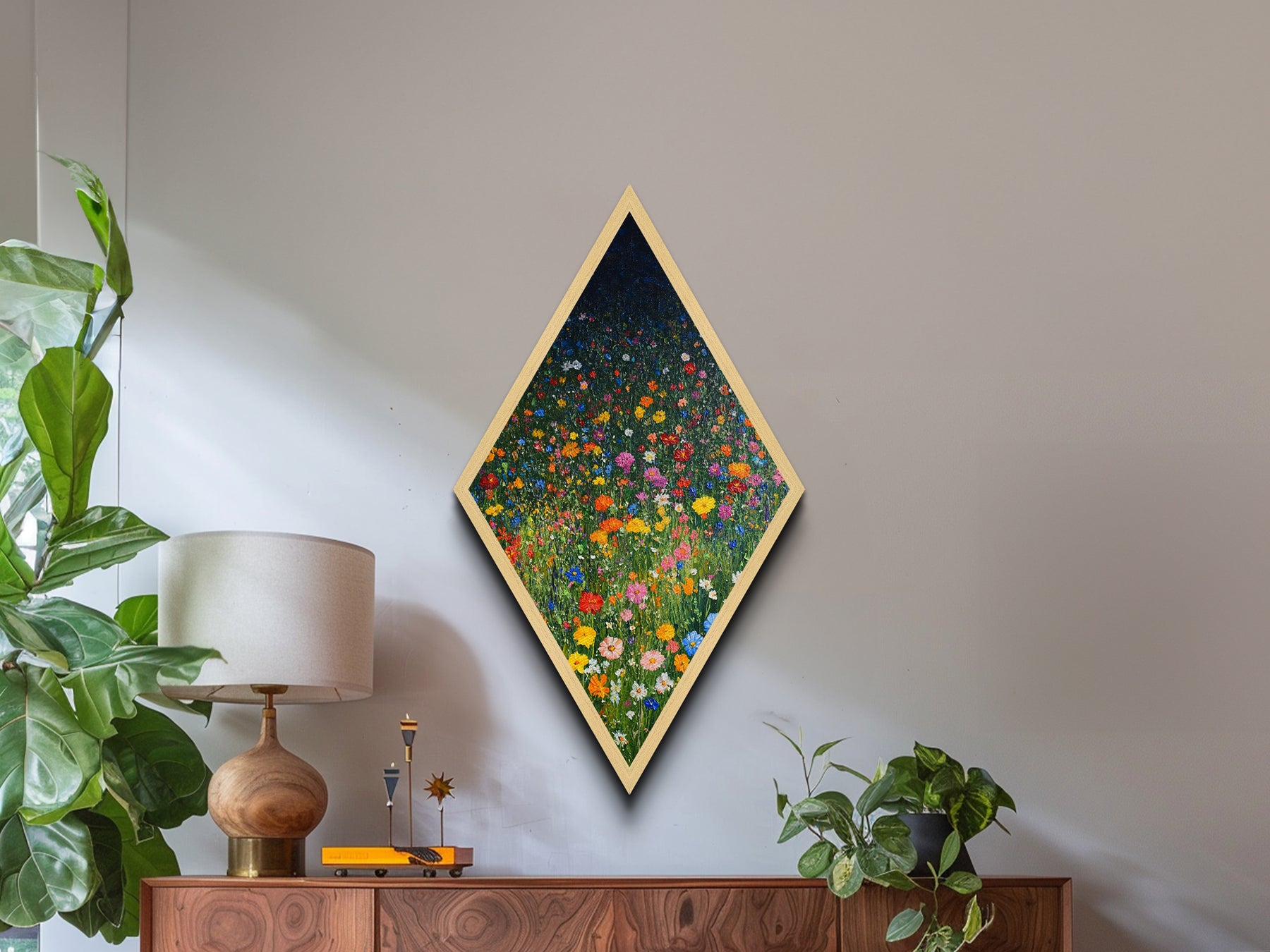Starburst Bright Rays – Diamond Shaped Canvas Textured Print, retro abstract wall art, vibrant geometric design, bold midcentury decor