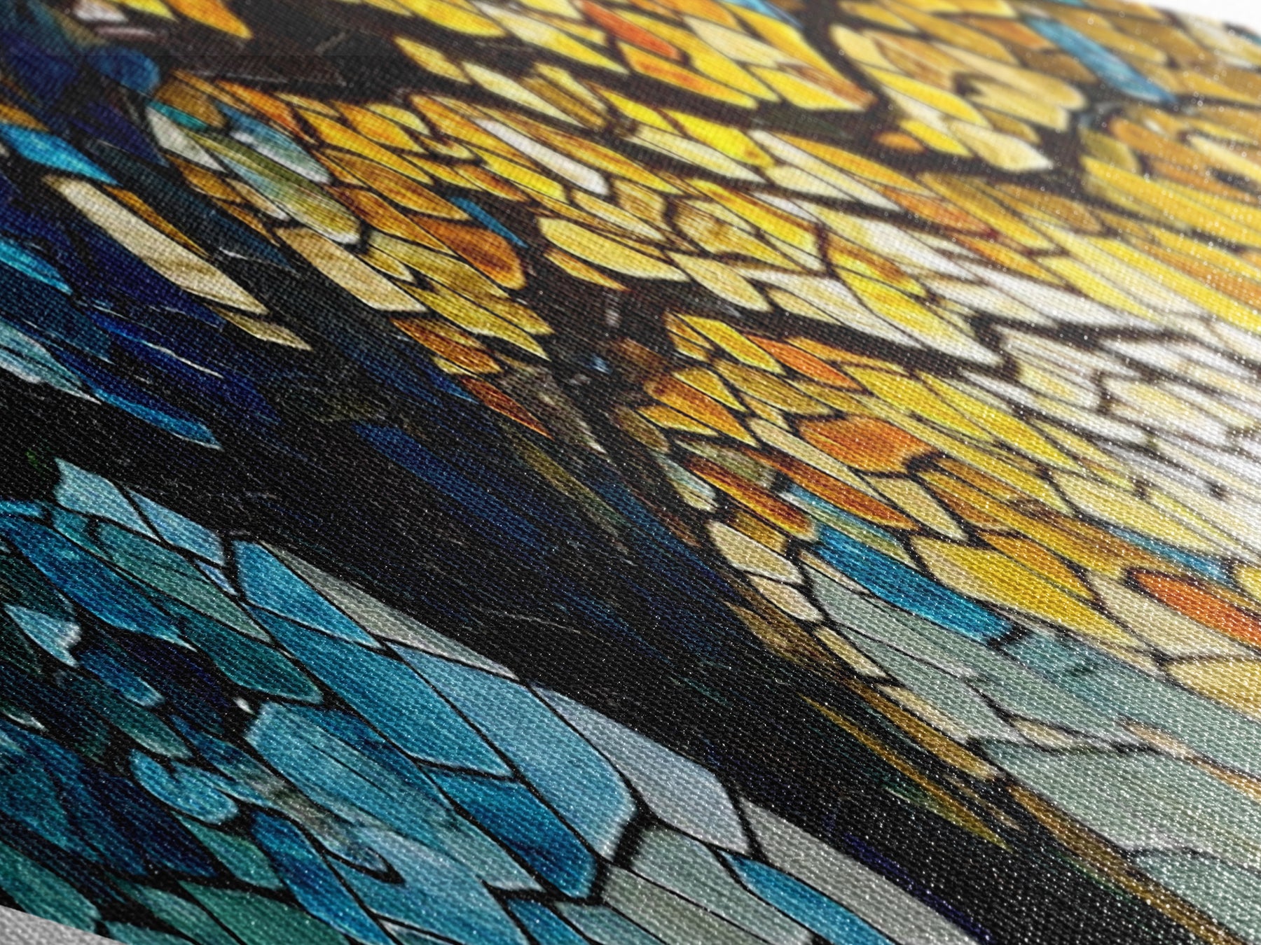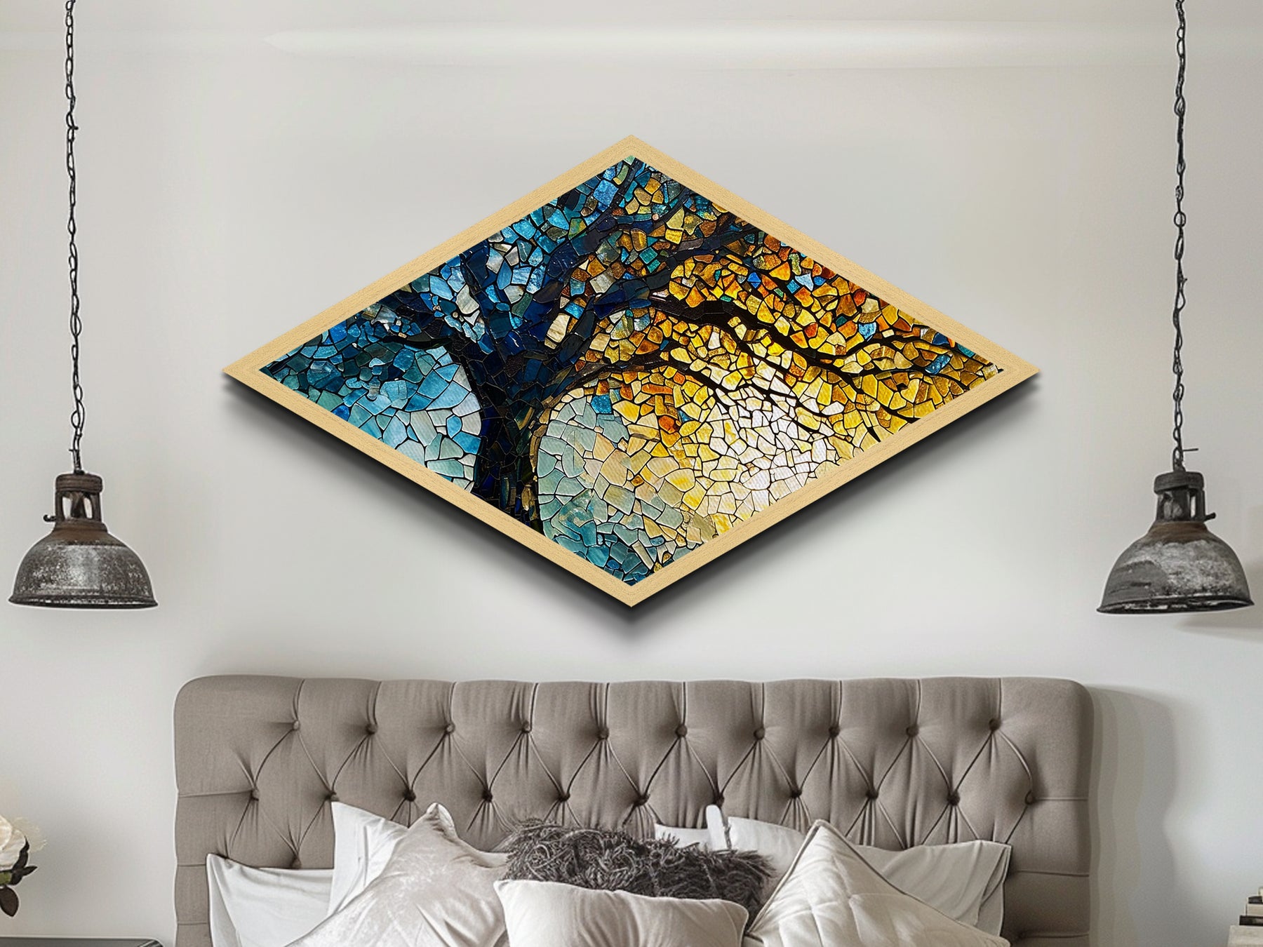 Tree of Radiance — Diamond Shaped Canvas Embossed Print mosaic nature decor, stained glass style, spiritual healing tree wall piece