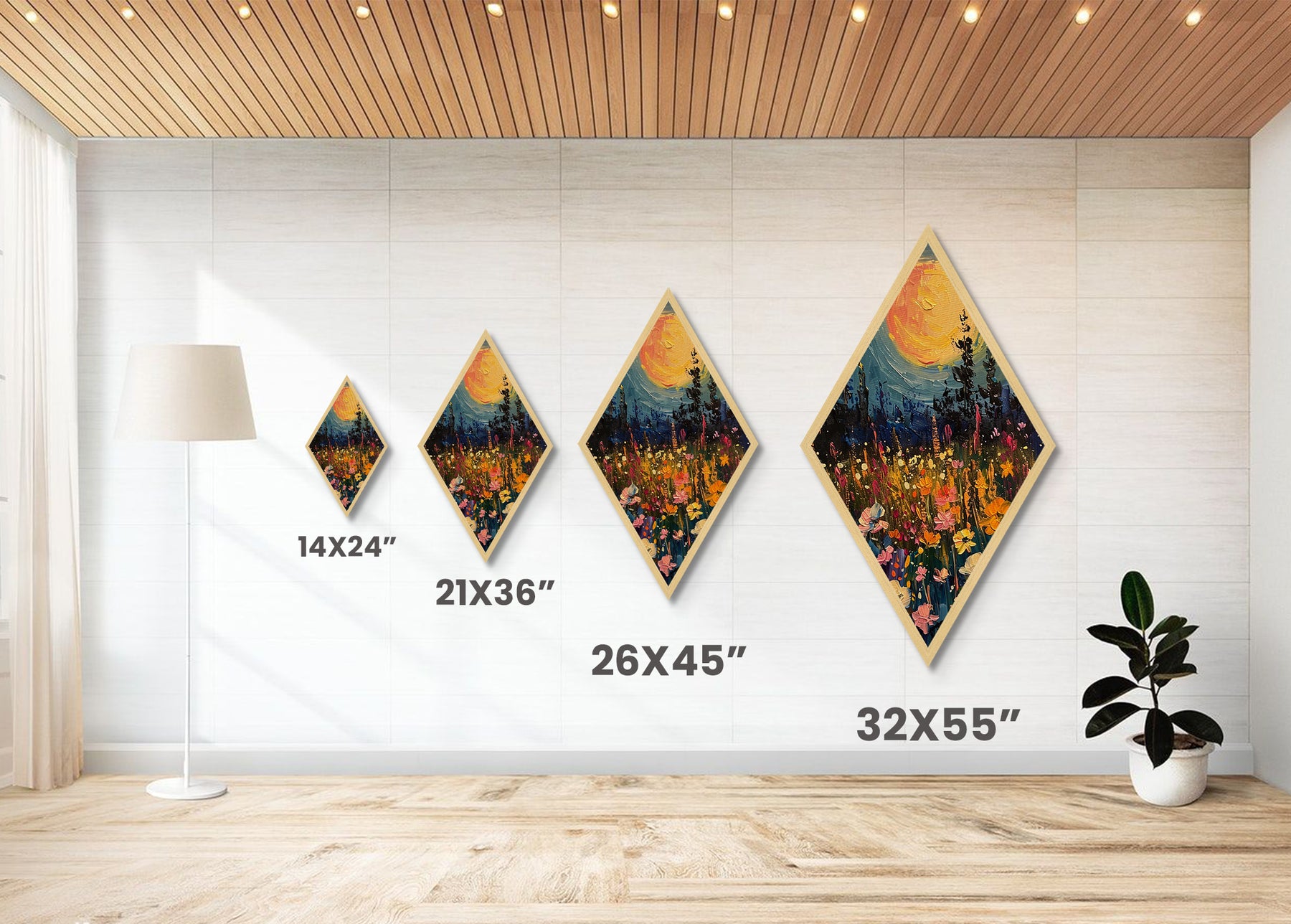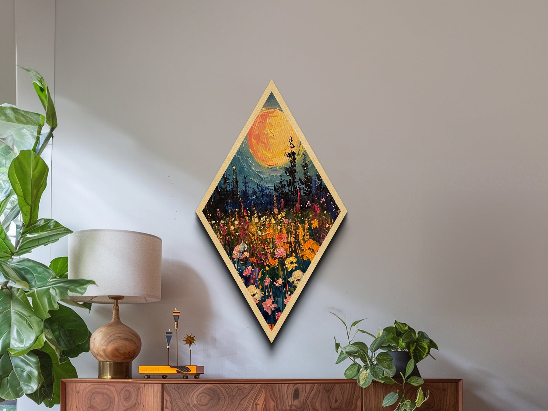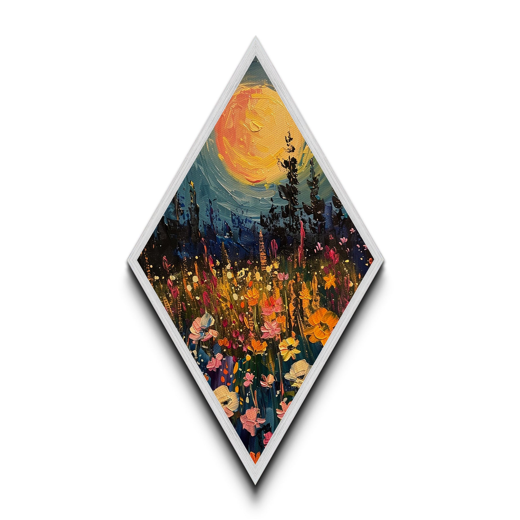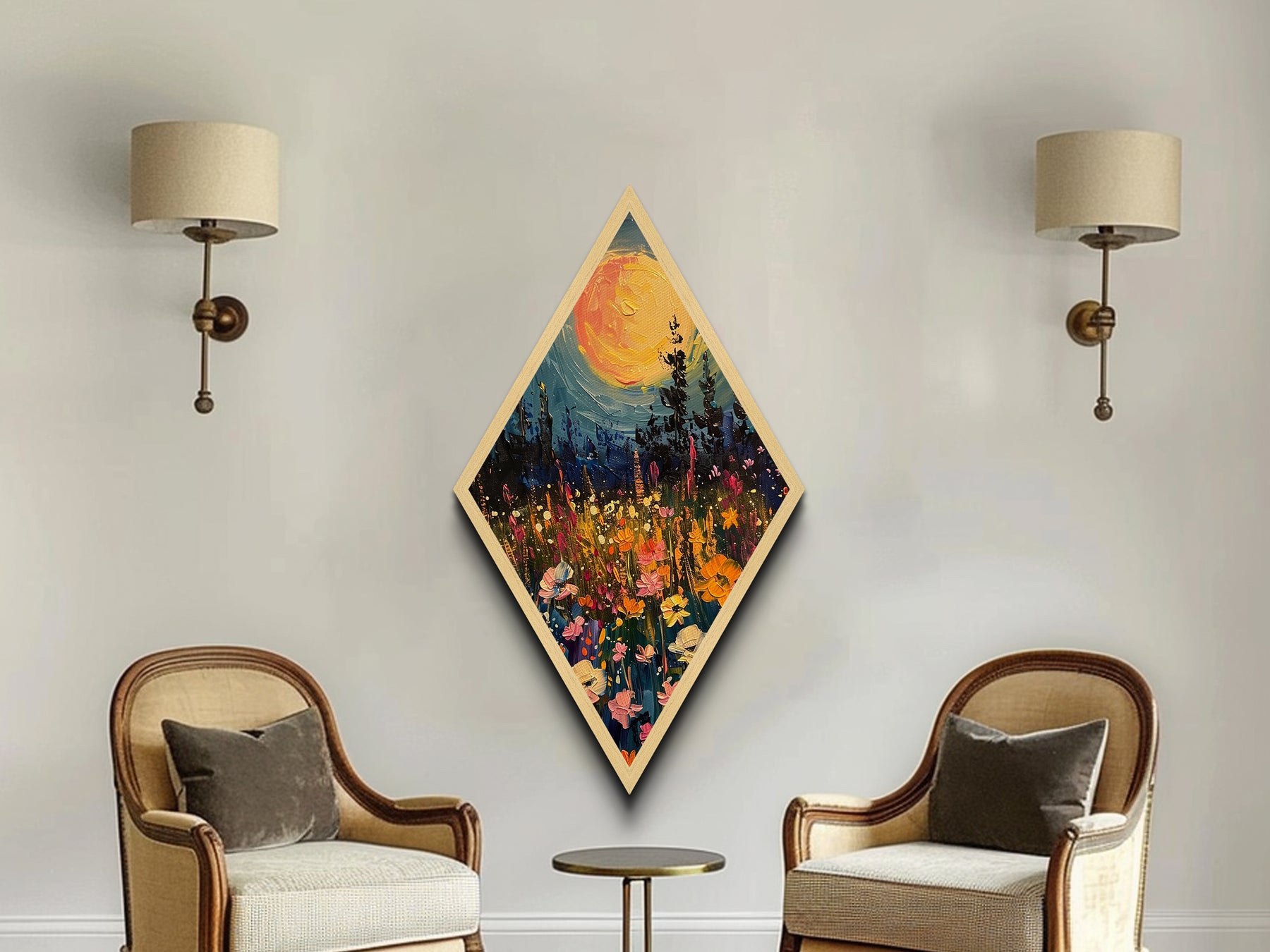 Wildflowers Painting Print, Spring Time Floral Art, Diamond Shaped Art, Canvas Embossed Print, Canvas Texture Wall Art