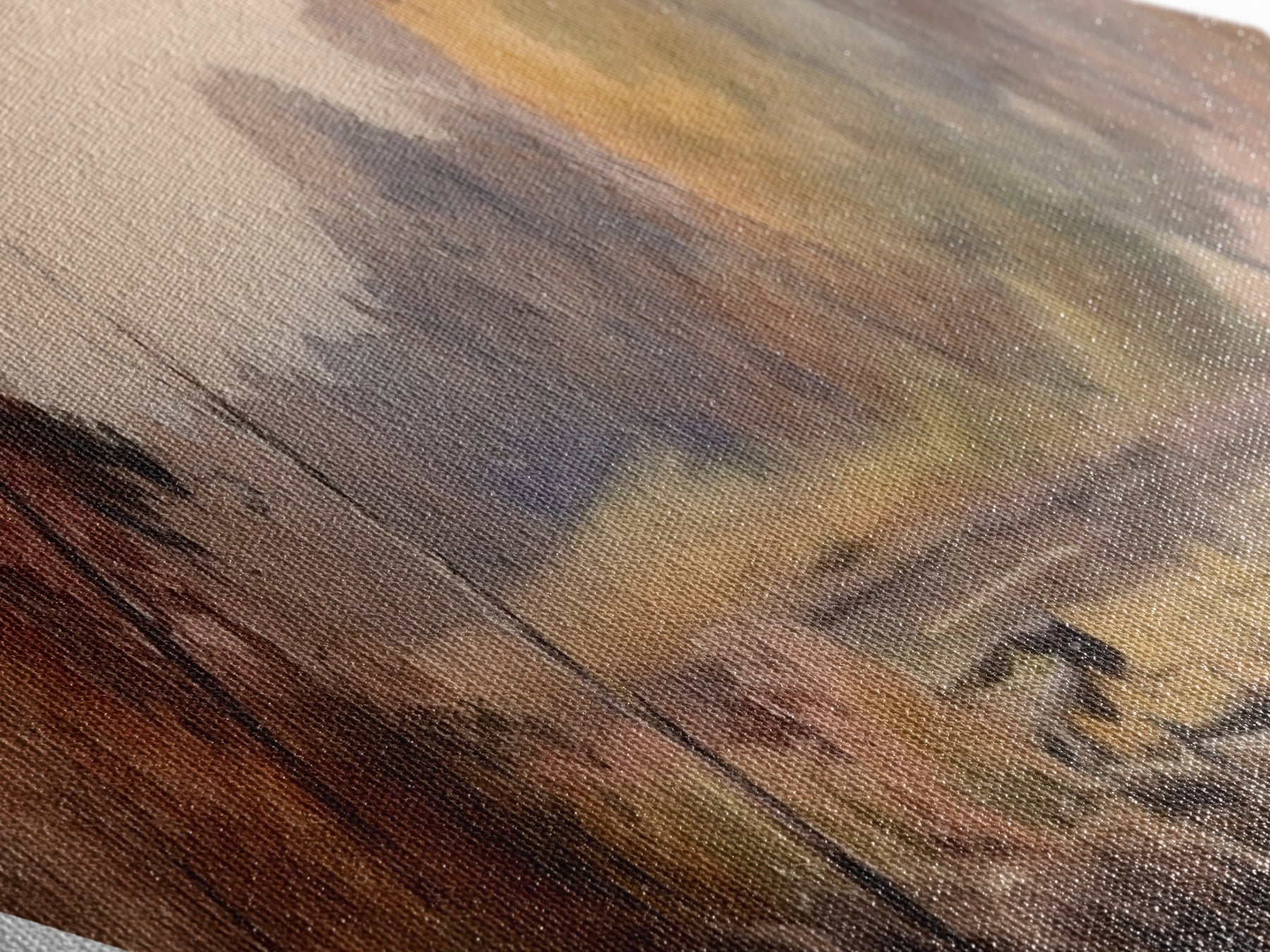 Most of our canvases are made in the USA, with the exception of canvases ordered with the light oak unstained frames, and any large canvases (24x48, 30x60, 16x48 and 20x60) ordered WITH a frame. These are temporarily made in and shipped from Europe, while we try to find a more consistent supplier in the USA.
