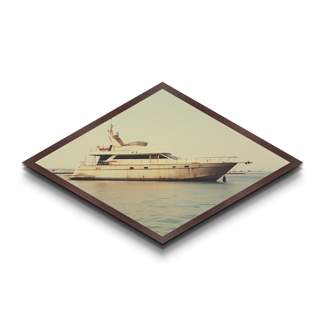 Weathered Yacht Still Diamond Shaped nautical boat scene Canvas Textured Print marina-inspired sea lover gift modern living decor