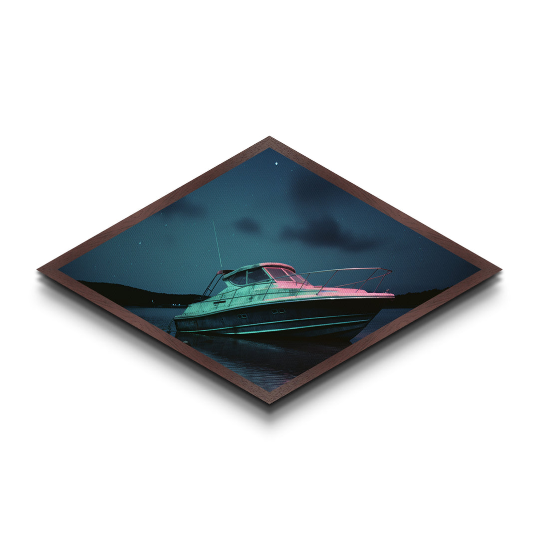 Night Boat Tranquility Diamond Shaped serene starry watercraft Canvas Art Print nautical room mood lighting boat enthusiast wall art