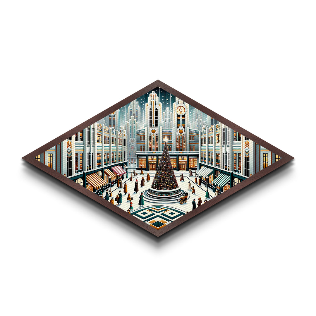 Art Deco Holiday Diamond Shaped Canvas Embossed Print Christmas plaza architecture modern vintage style festive gift elegant decor