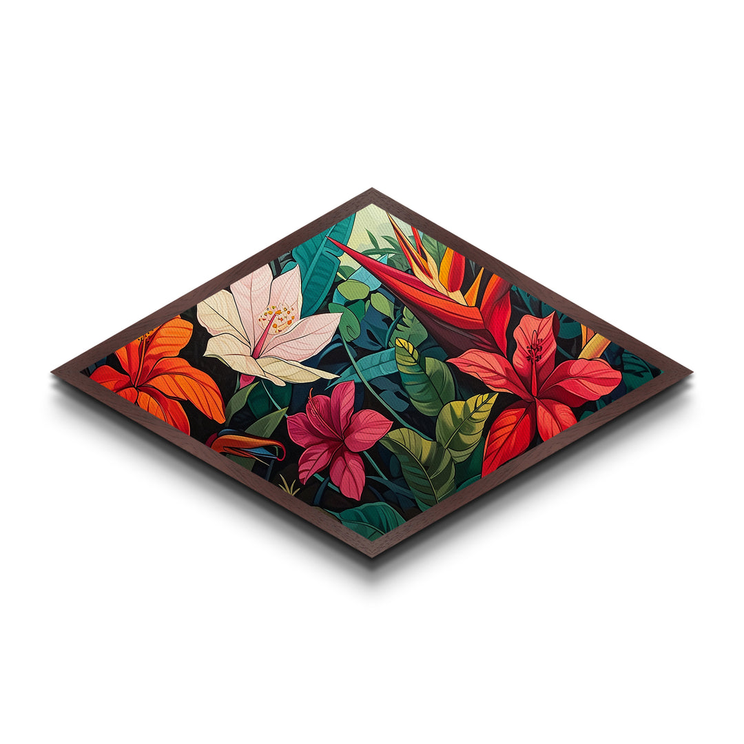 Tropical Bloom Burst — Diamond Shaped Canvas Art Print bold floral design, colorful botanical artwork, vibrant bedroom wall decor
