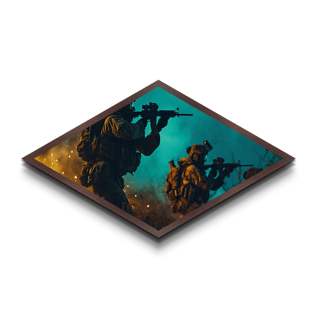 Tactical Team Night Diamond Shaped Canvas Art Print military soldier decor man cave wall art gift patriotic American pride