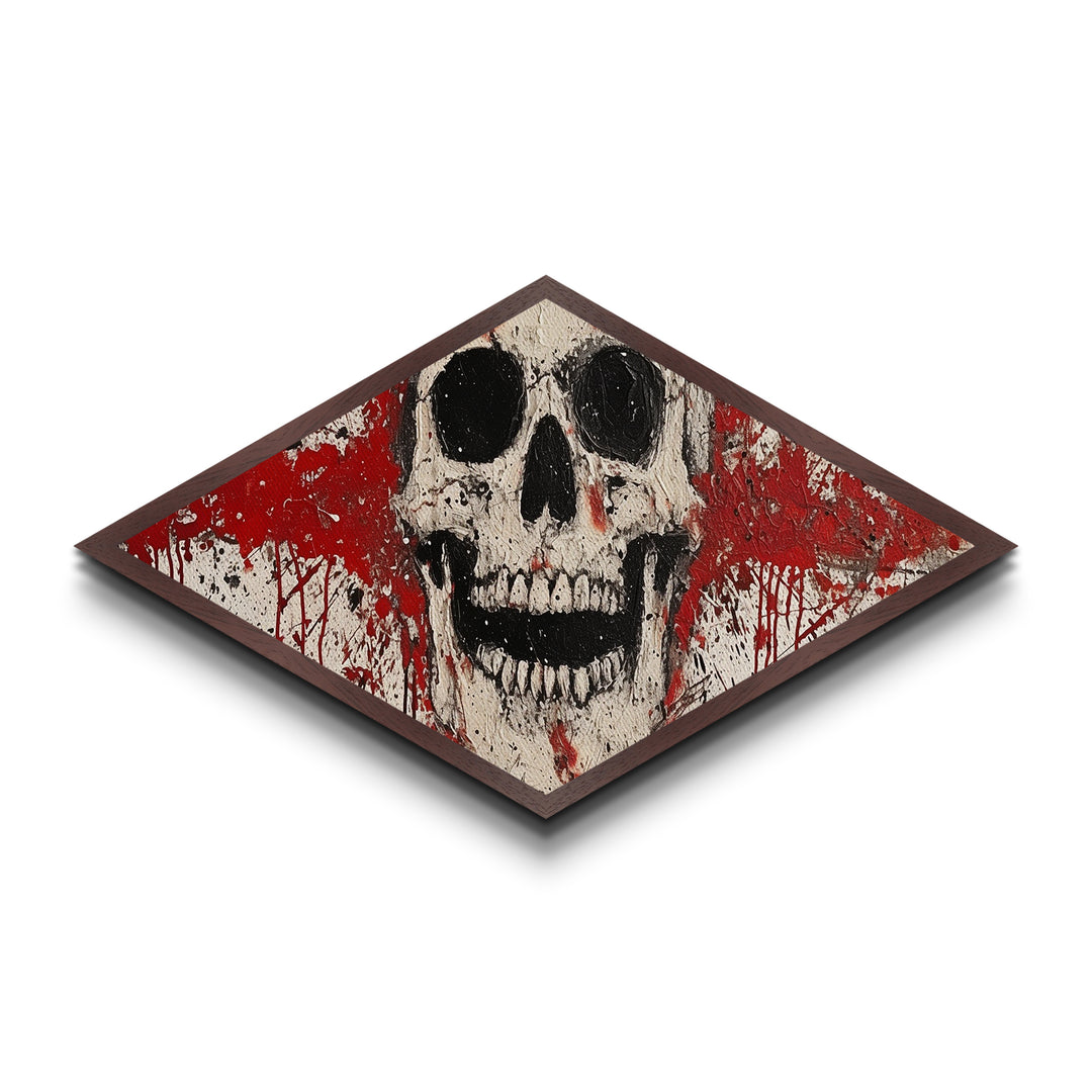 Splattered Skull Horror Diamond Shaped Canvas Textured Print abstract gothic art Halloween wall decor edgy red black painting