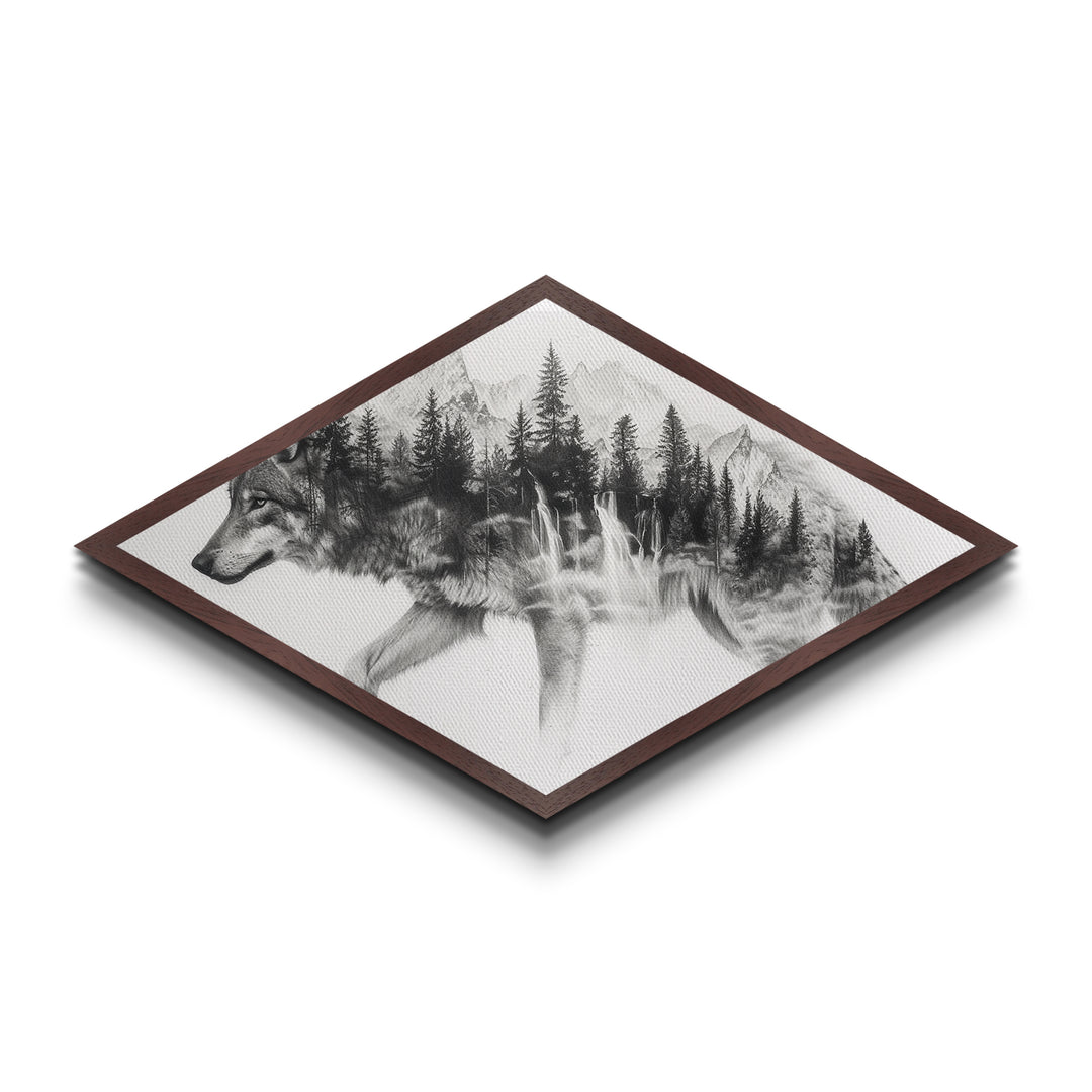 Wolf Spirit Forest Diamond Shaped Canvas Textured Print wildlife nature wall art rustic lodge decor majestic mountain wolf