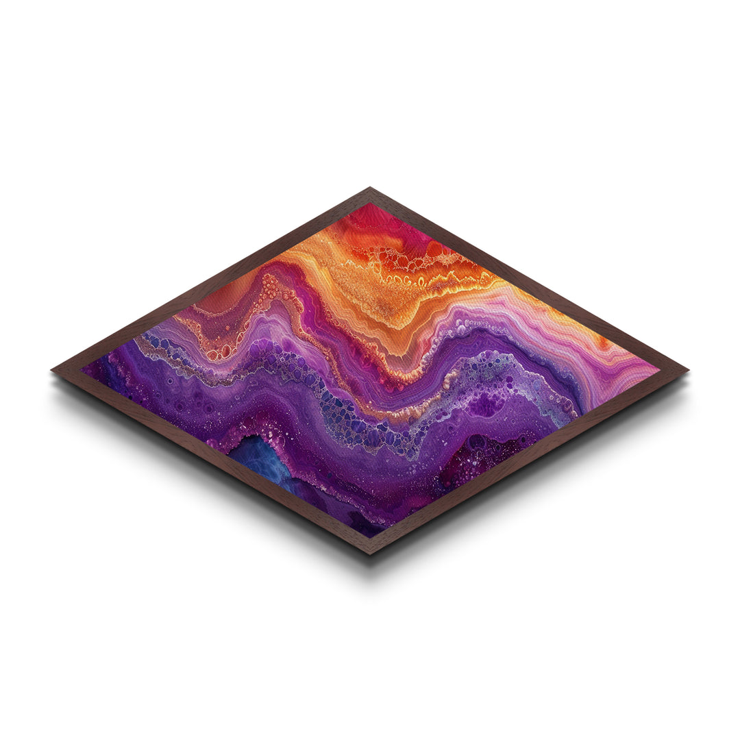 Violet Fire Quartz Diamond Shaped Canvas Textured Print Geode Inspired Abstract Art Colorful Boho Chic Living Room Accent