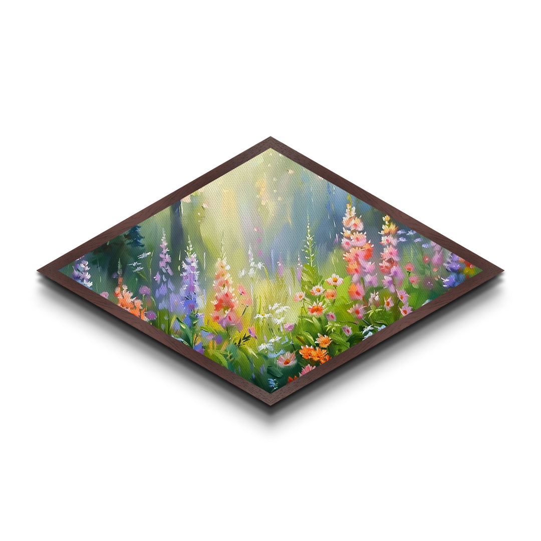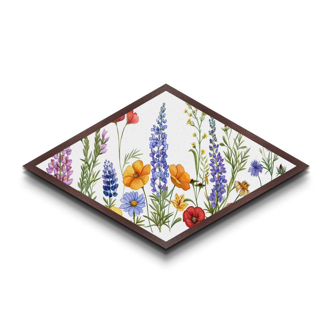 Wildflower Harmony – Diamond Shaped Canvas Textured Print spring floral watercolor wall art botanical cottagecore gift nature aesthetic