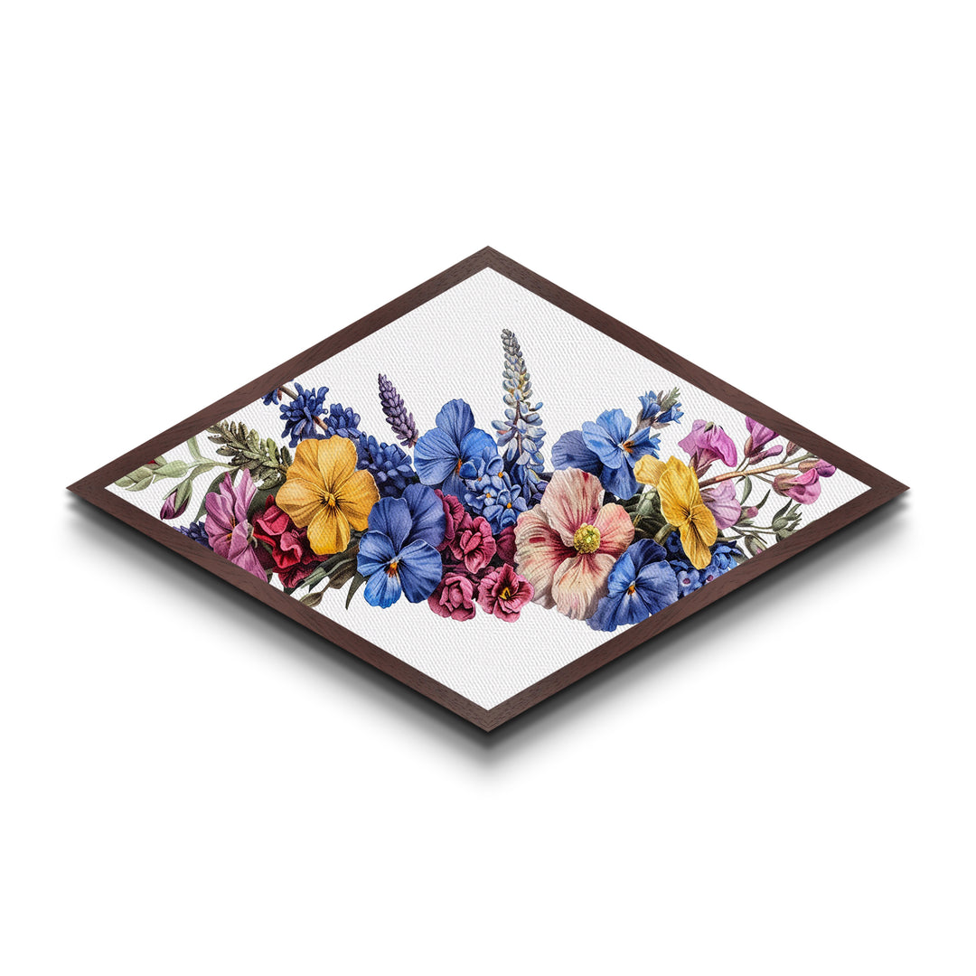 Botanical Bloom – Diamond Shaped Canvas Textured Print garden wall art watercolor wildflowers living room decor spring floral print