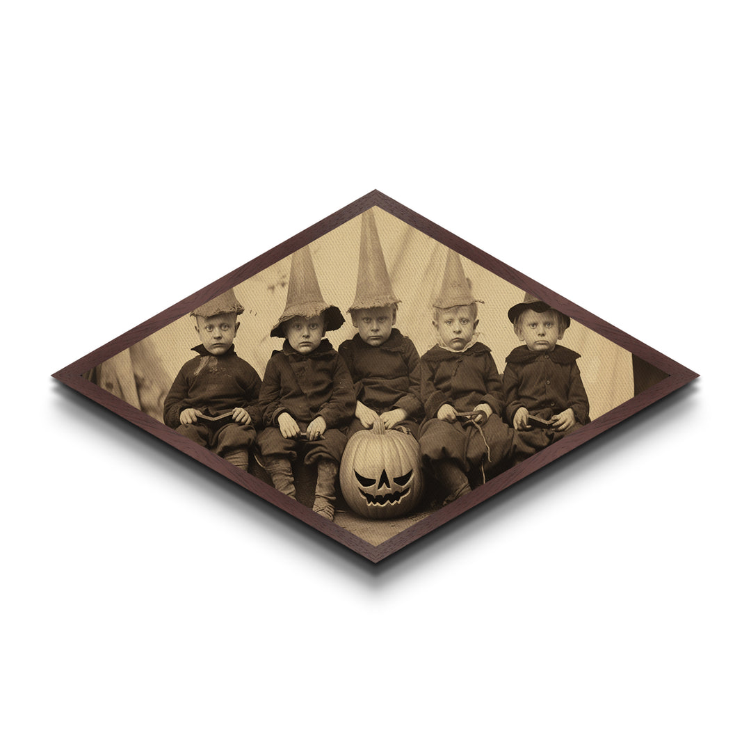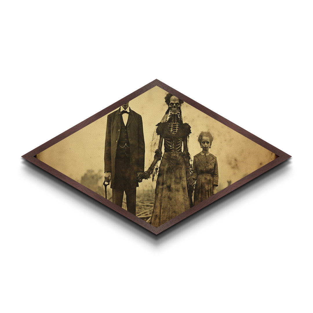 Gothic Family Portrait Diamond Shaped Halloween Canvas Textured Print vintage horror wall art creepy skeleton ghost girl decor