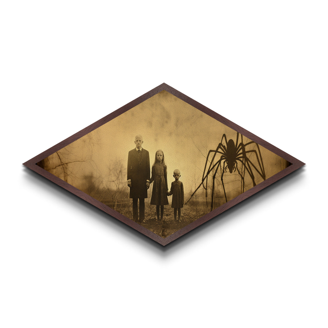 Spider Shadow Scene Diamond Shaped Gothic Canvas Textured Print creepy victorian children haunted antique horror Halloween wall decor