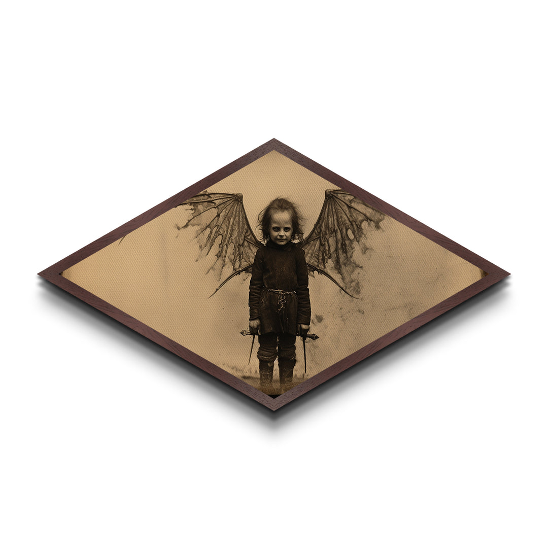 Demon Winged Child Diamond Shaped Creepy Canvas Embossed Print vintage horror halloween decor spooky gothic monster portrait wall art