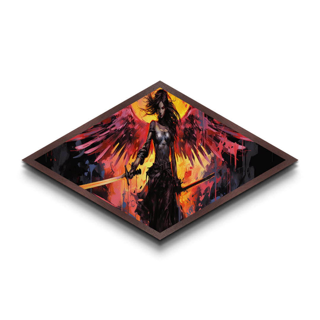 Blade Wing Warrior Diamond Shaped Angel Canvas Art Print fiery red wings sword epic fantasy female warrior modern home wall decor