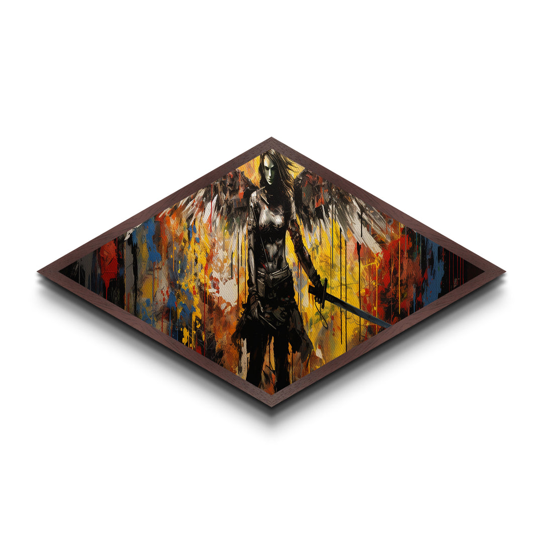 Apocalypse Blade Angel Diamond Shaped Warrior Canvas Art Print urban graffiti style fantasy sword wings chaos dramatic wall decor
