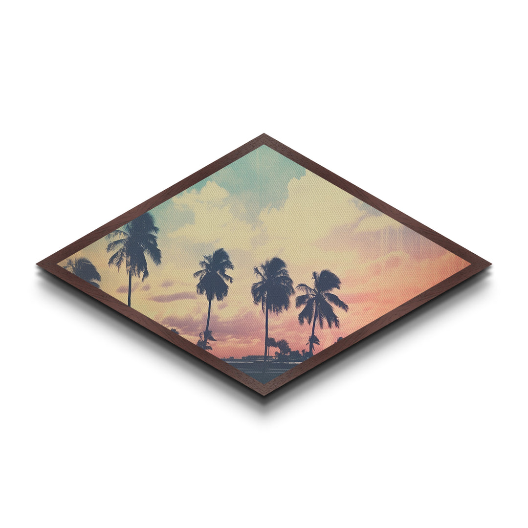 Retro Palm Sunset Diamond Shaped vintage tropical wall decor Canvas Art Print beach style summer vibe great housewarming gift idea