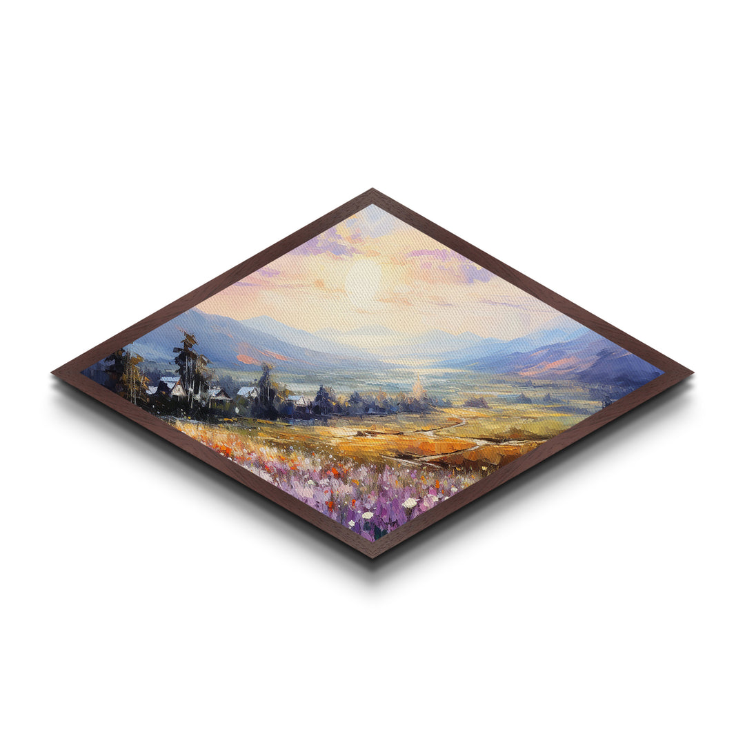Morning Valley Bloom Diamond Shaped scenic countryside sunrise Canvas Art Print floral landscape painting warm family room decor
