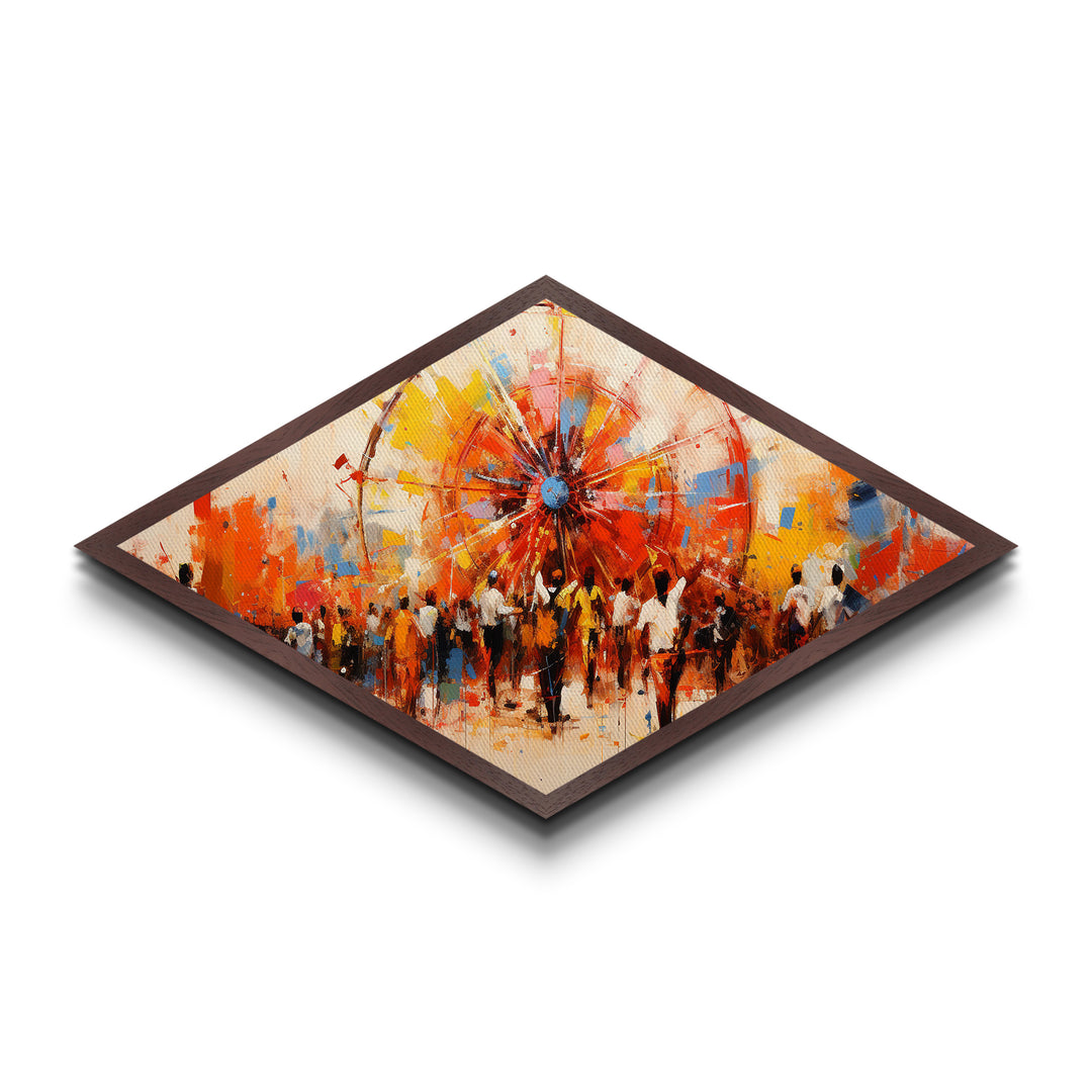 Carnival Whirl Diamond Shaped Canvas Art Print vibrant abstract fair scene living room accent modern color splash wall decor gift