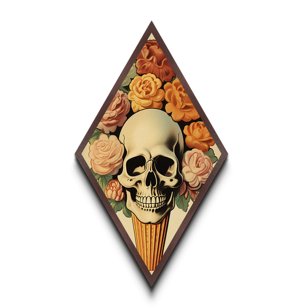 Skull Floral Cone – Diamond Shaped Canvas Art Print Gothic Floral Wall Decor, Vintage Tattoo Style, Skull Flower Art, Dark Romantic Vibe