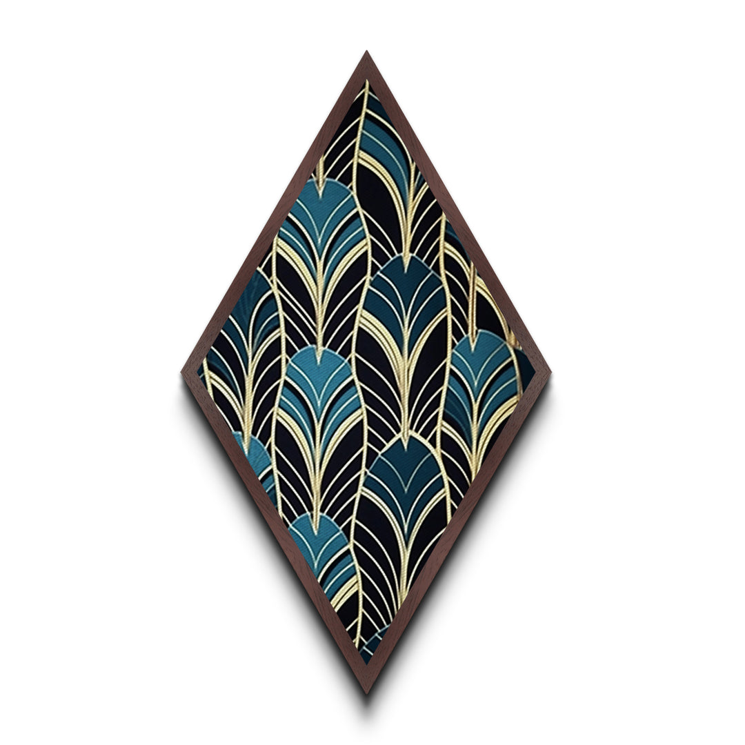 Teal Deco Leaves – Diamond Shaped Canvas Embossed Print Art Deco Wall Decor, Gold Foil Style, Geometric Pattern, Modern Glam Botanical Print