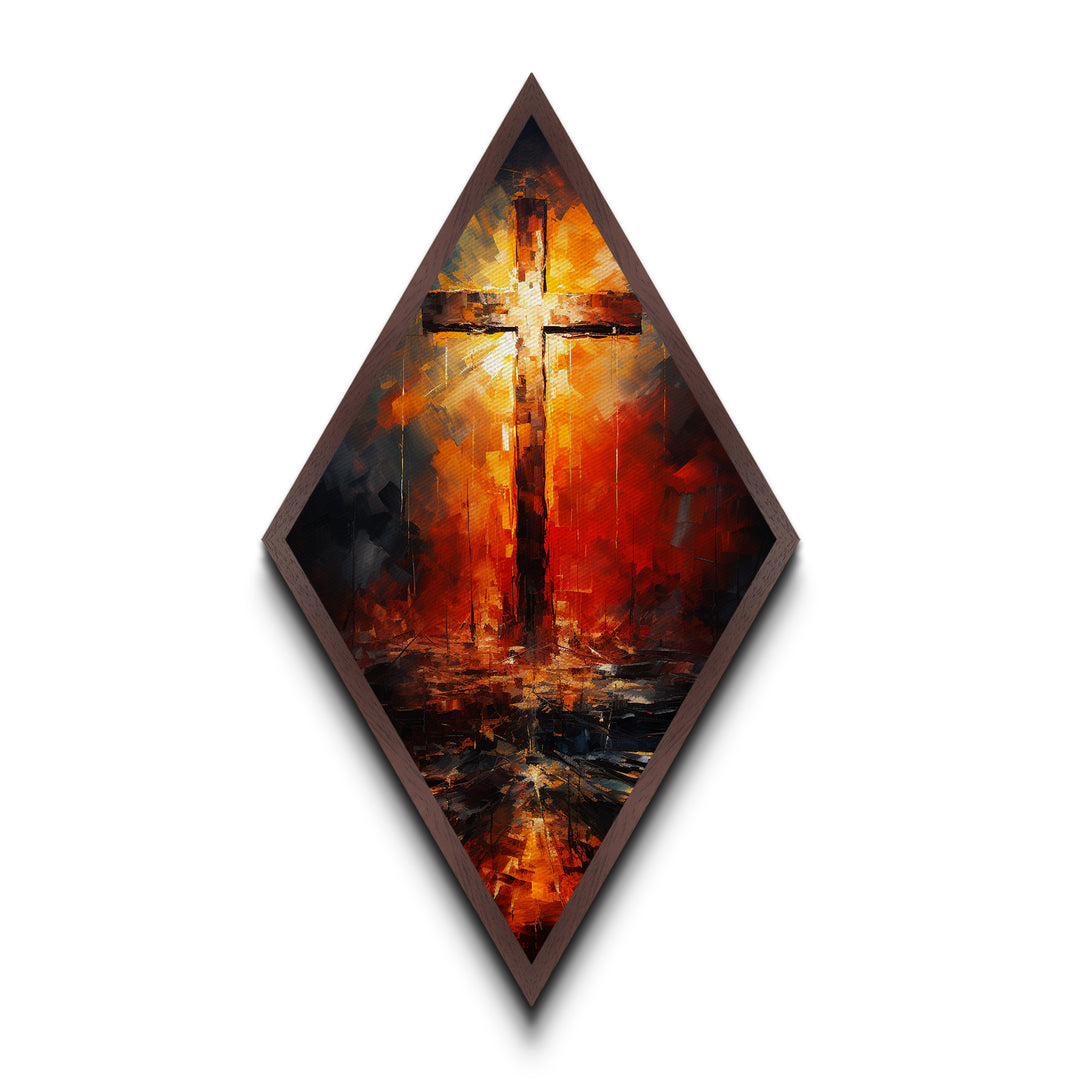 Watercolor Painting Print Of a Cross, Funky Christian Decor, Canvas Art, Canvas Textured Print Wall Art, Diamond Shaped Wall Art