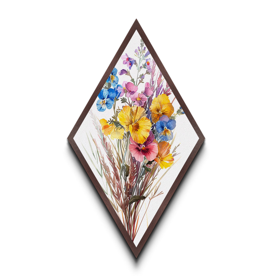 Diamond Shaped Wildflower Meadow Gathering, colorful floral Canvas Embossed Print, watercolor field bouquet, cottagecore botanical artwork