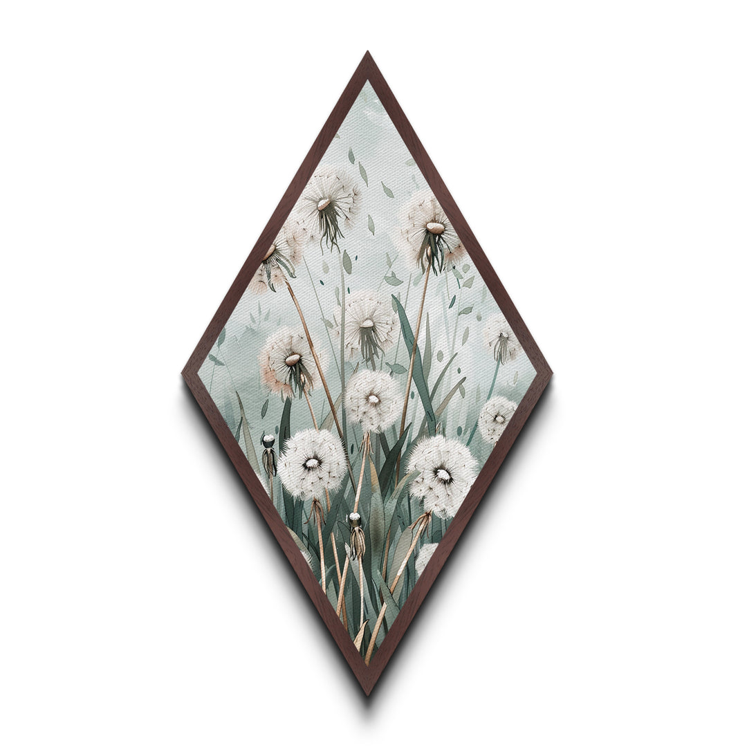 Diamond Shaped Dandelion Garden Breeze, soft pastel botanical Canvas Textured Print, airy watercolor nature artwork, neutral calm decor