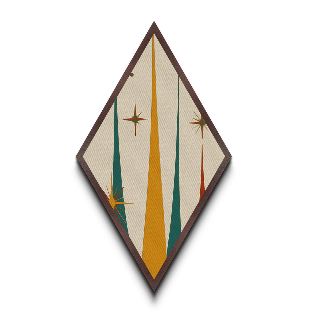 Retro Rocket Spikes – Diamond Shaped Canvas Art Print, midcentury atomic design, minimalist geometric decor, starburst pattern artwork