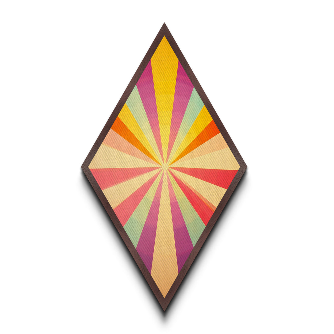 Radiant Retro Burst Diamond Shaped Canvas Art Print with sunshine ray design vivid rainbow starburst midcentury modern energy abstract wall decor