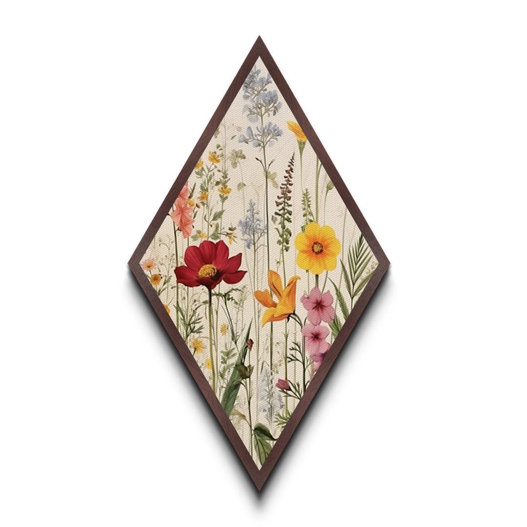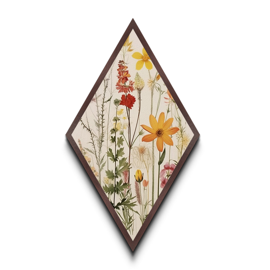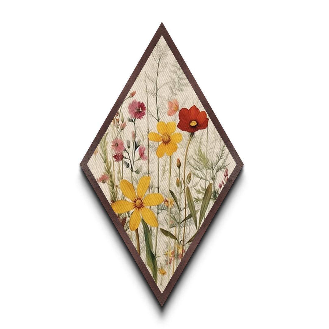 Vintage Wildflowers Diamond Shaped Canvas Embossed Print, Botanical Floral Garden Art, Retro Nature Decor Accent Piece