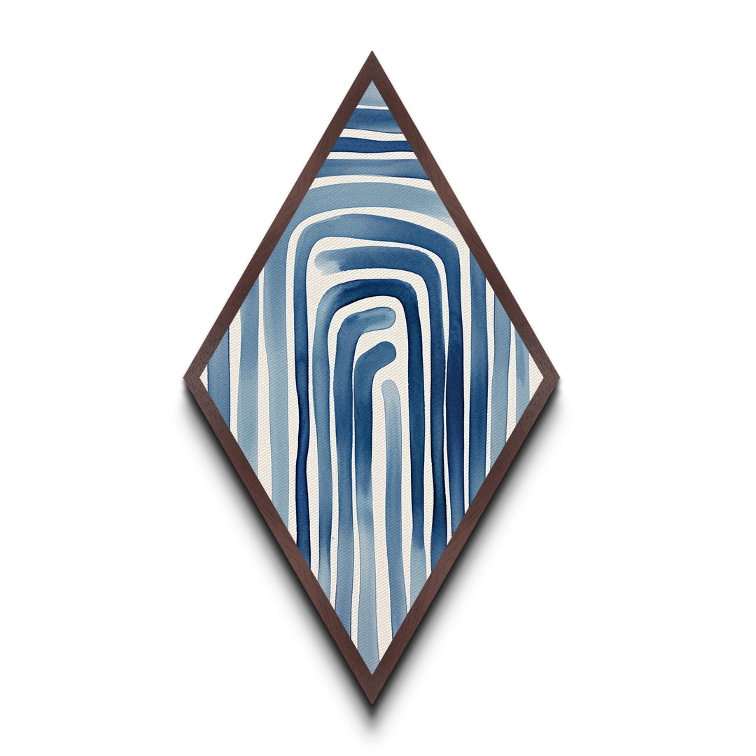 Ocean Maze Lines Diamond Shaped Blue Abstract Minimalist Canvas Embossed Print Modern Wall Decor Contemporary Geometric Accent