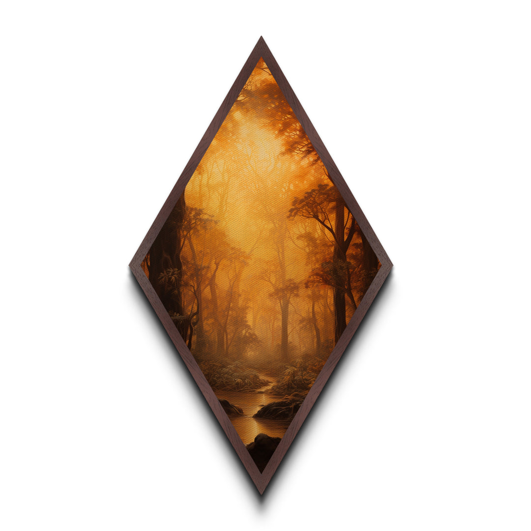 Fall In The Forest, Canvas Textured Print, Diamond Shaped Landscape Painting, Retro Home Decor, Nature Painting