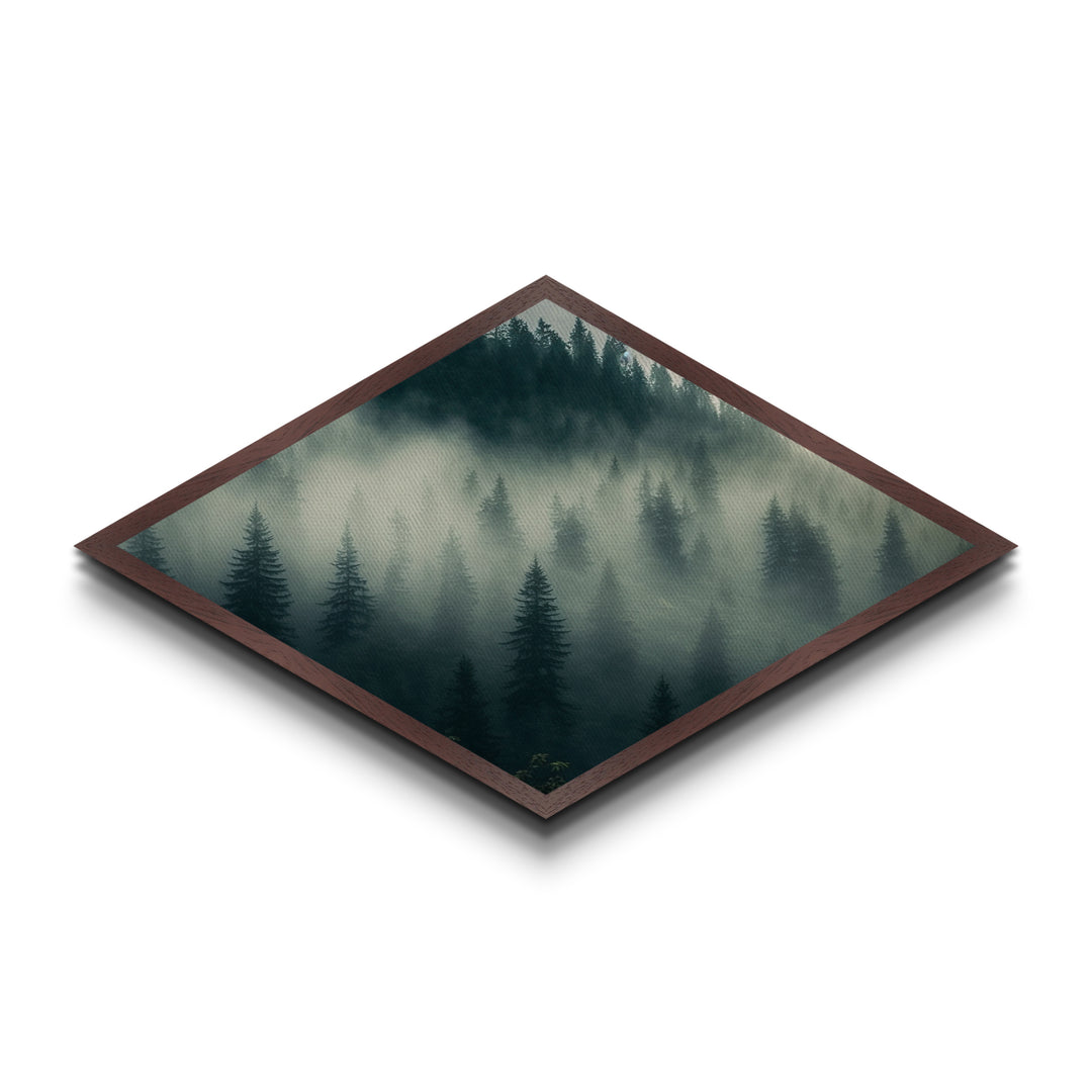 Fog Drenched Pines Diamond Shaped Forest Landscape Canvas Art Print Serene Tree Silhouettes Moody Mountain Fog Wilderness Wall Art