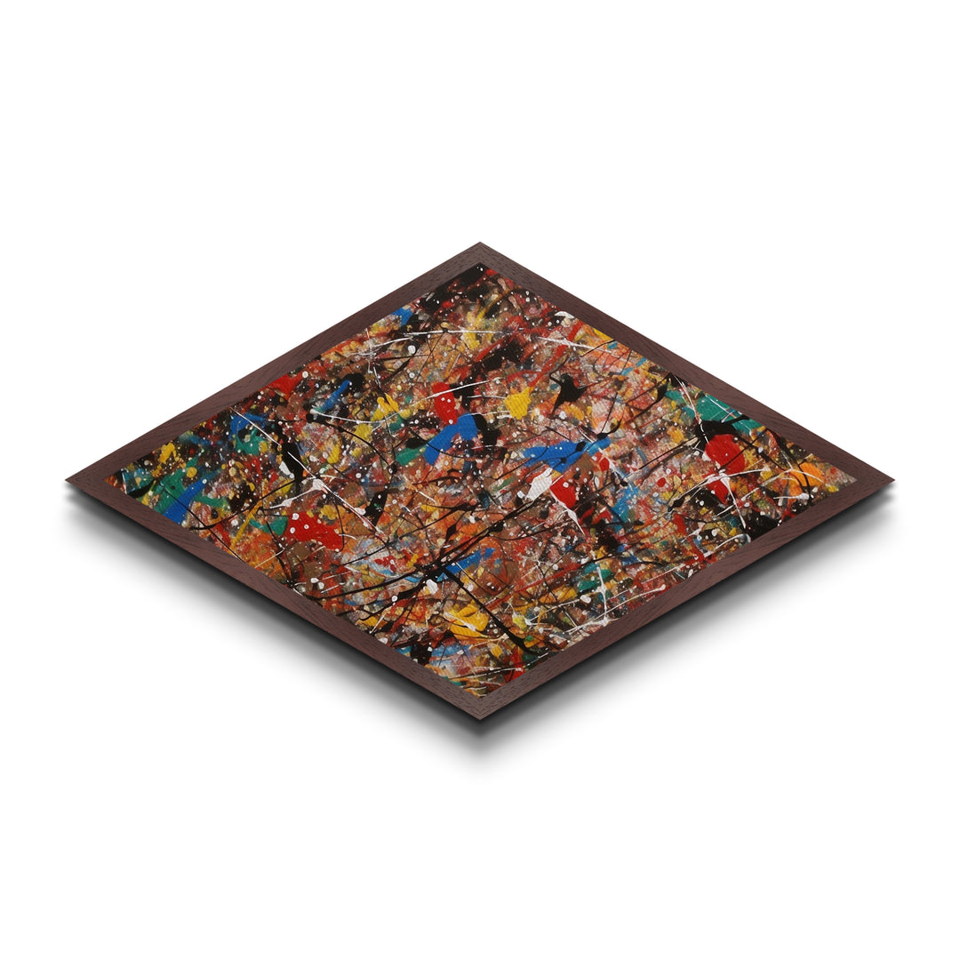 Color Chaos Burst Diamond Shaped Abstract Expressionism Canvas Textured Print Drip Paint Energy Multicolor Pollock Style Wall Decor