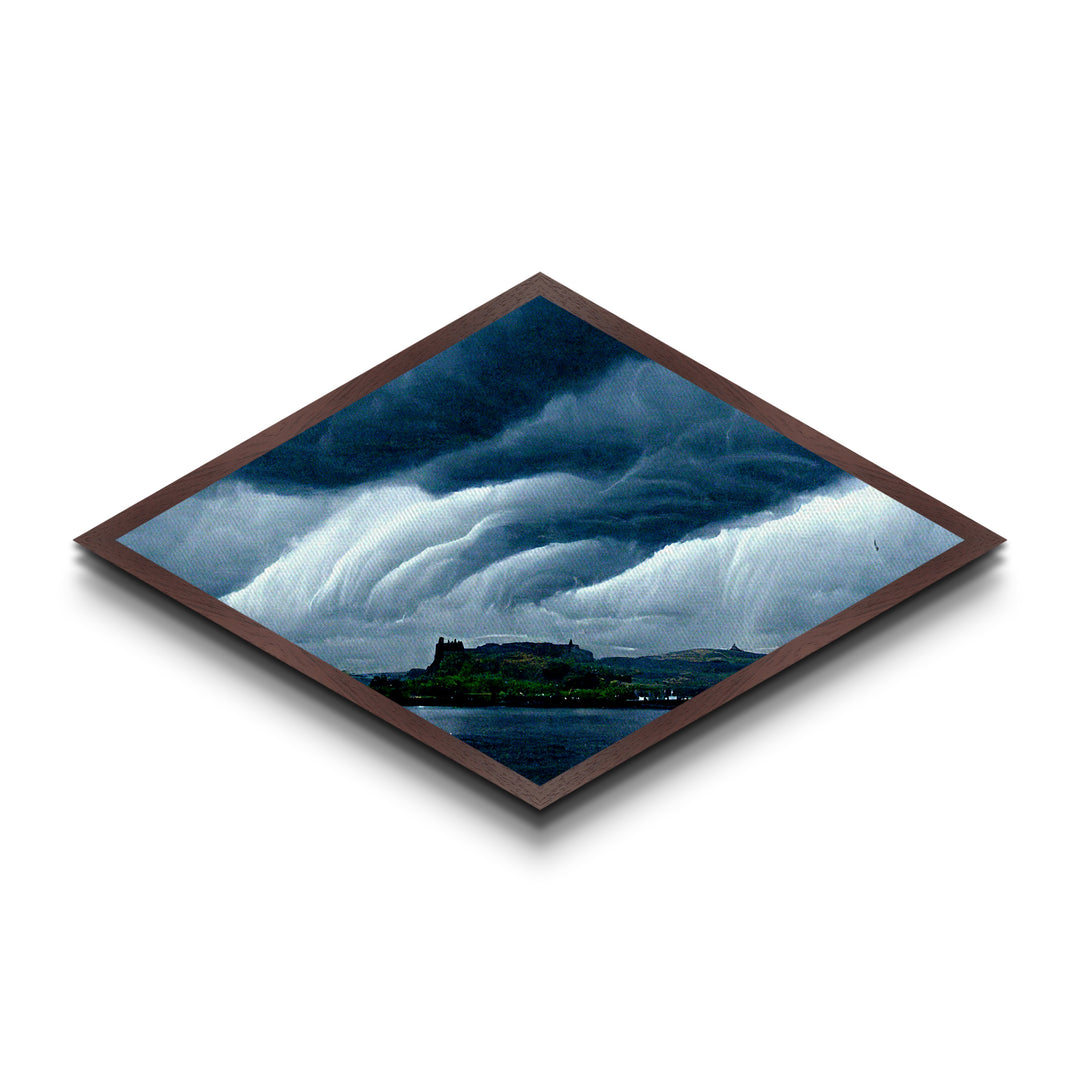 Storm Over Castle Diamond Shaped Dramatic Sky Canvas Art Print Thunderclouds Over Water Moody Landscape Gothic Fantasy Wall Decor